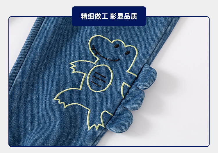 • 다크 블루 스테레오 자수 공룡 청바지