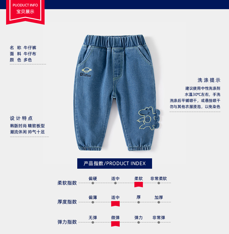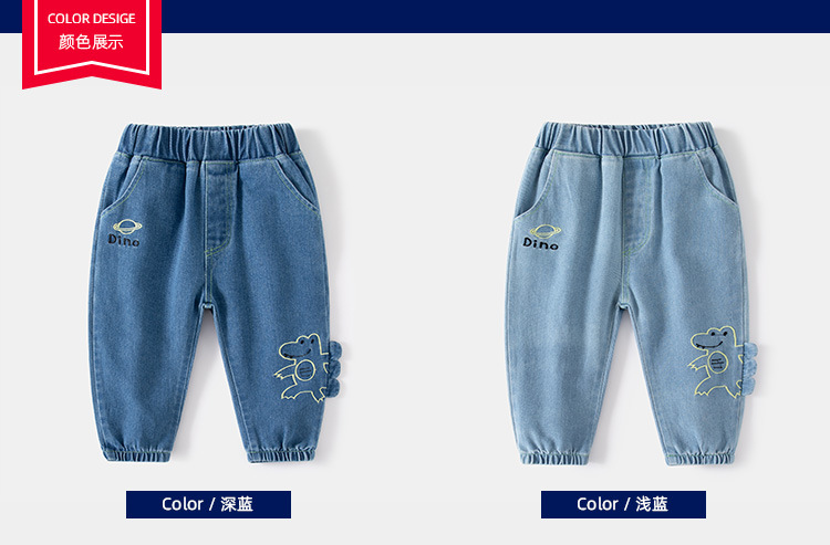 트렌디 한 프라이드 스트리트 봄 소년의 청바지 만화 공룡 패턴 청바지 캐주얼 미드 웨이스트 어린이 청바지스토어 가기