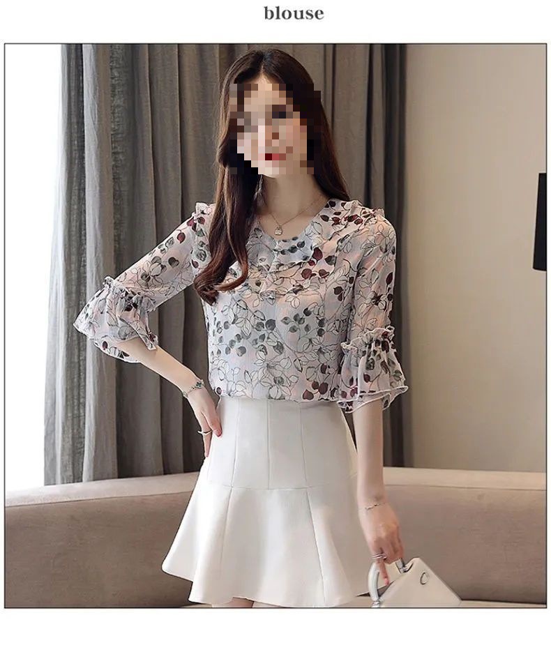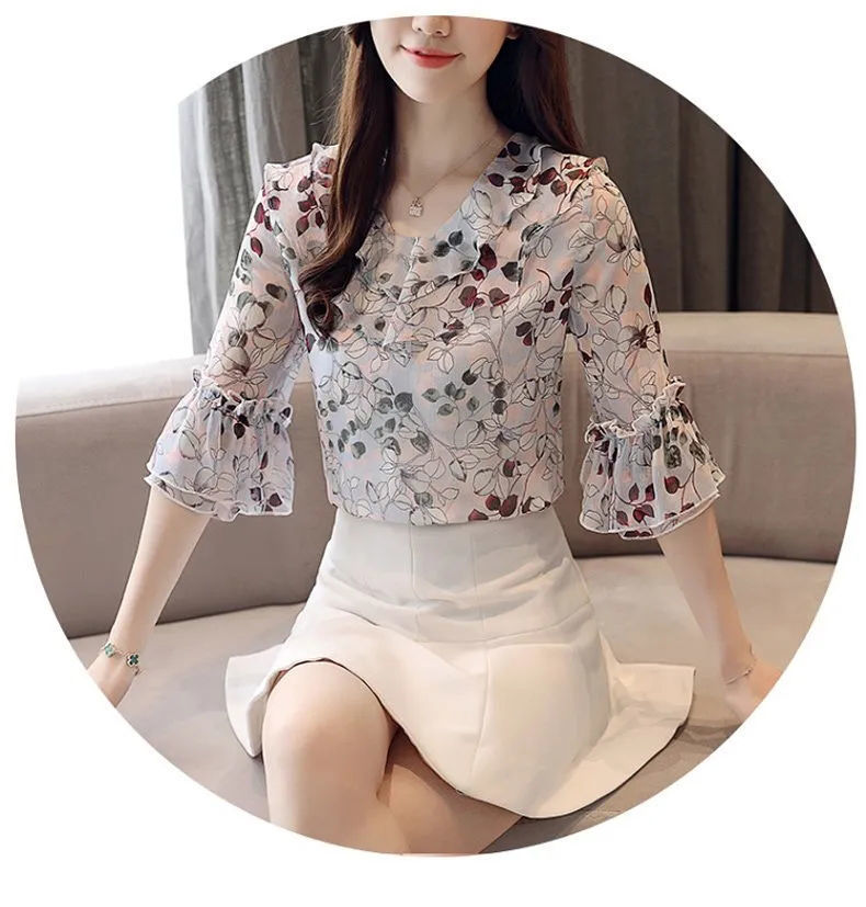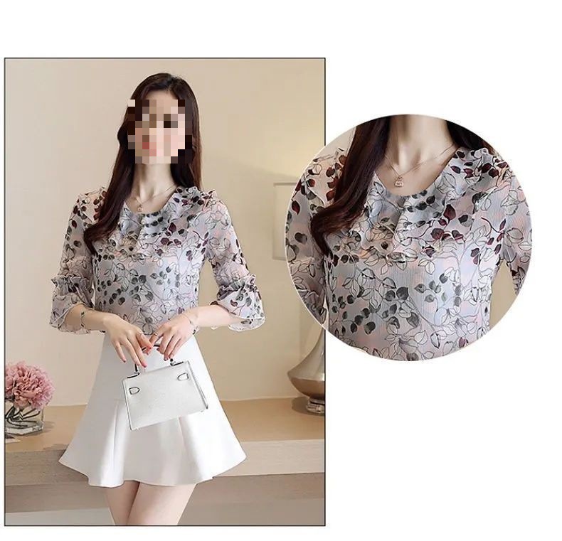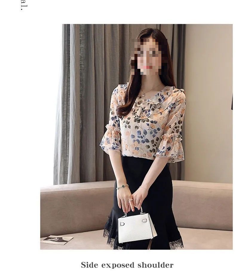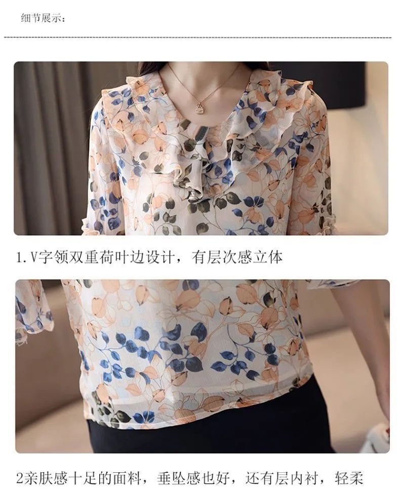 2025 여름 꽃 무늬 쉬폰 셔츠 대형 반팔 여성의 새로운 유행 탑 서양식 유행 셔츠스토어 가기