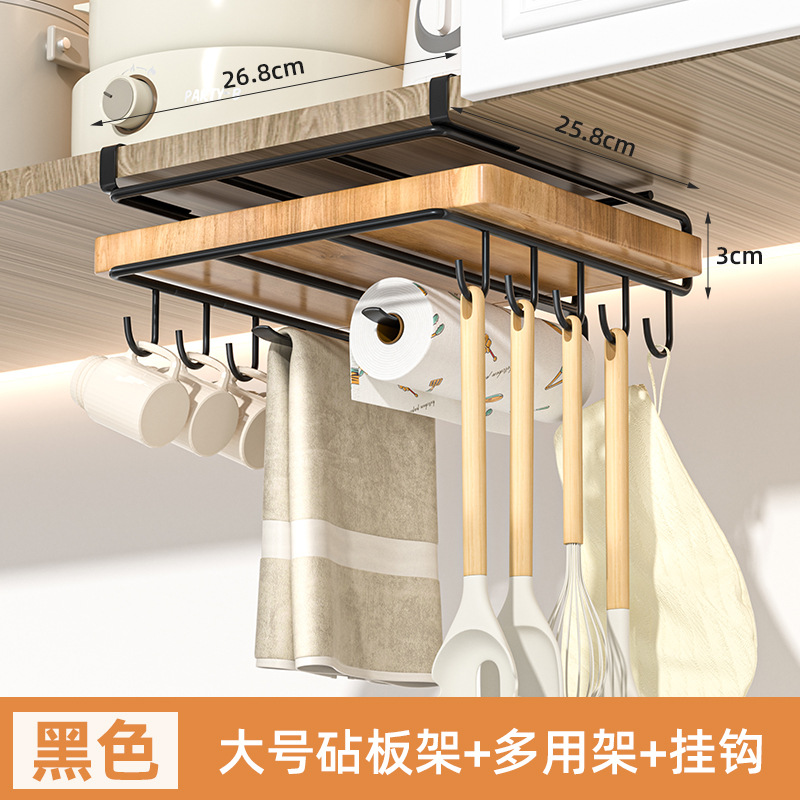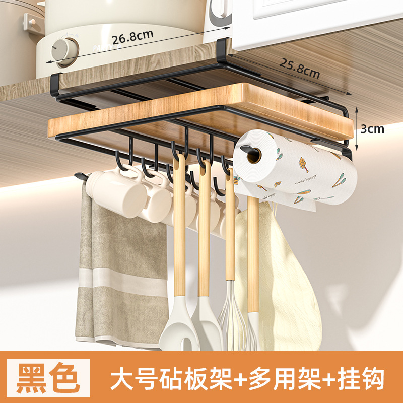 • [블랙] 25cm 냄비 커버 도마 보관 랙 (중간에 후크 부착)