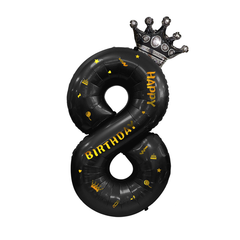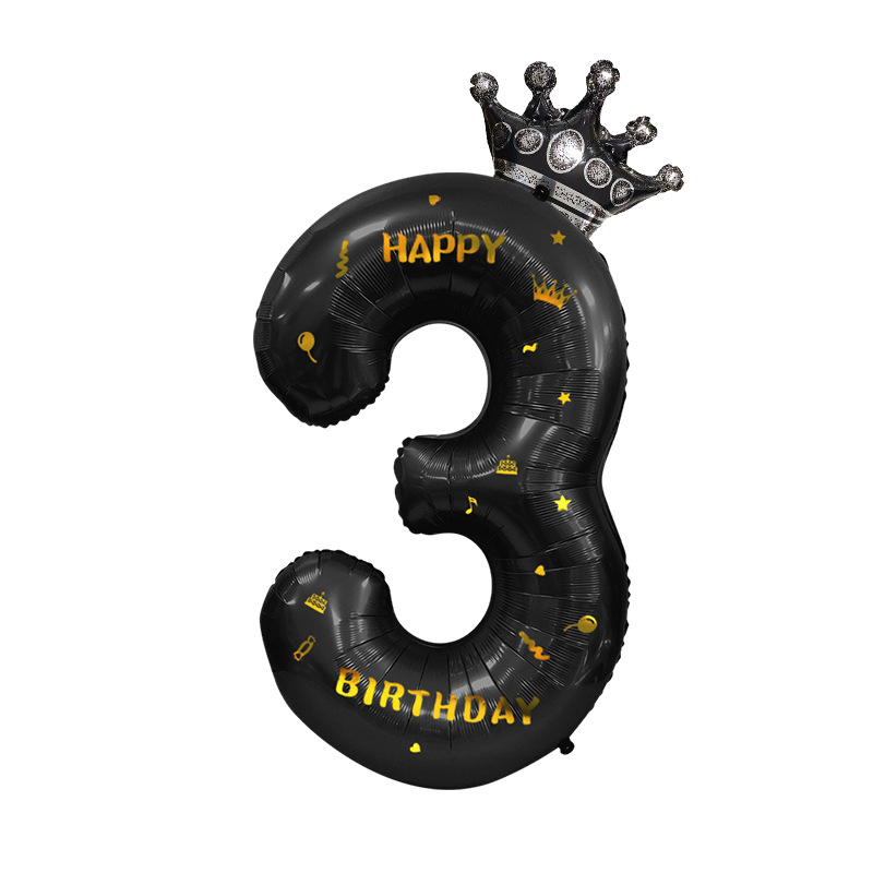 产品名称:40寸黑色数字烫金贴纸皇冠气球