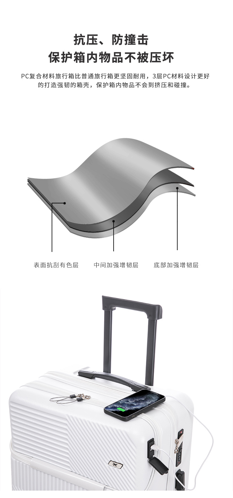 공장 직접 지퍼가 달린 여행용 케이스 외부 충전 인터페이스 트롤리 케이스 20inch 탑승 케이스 유통스토어 가기