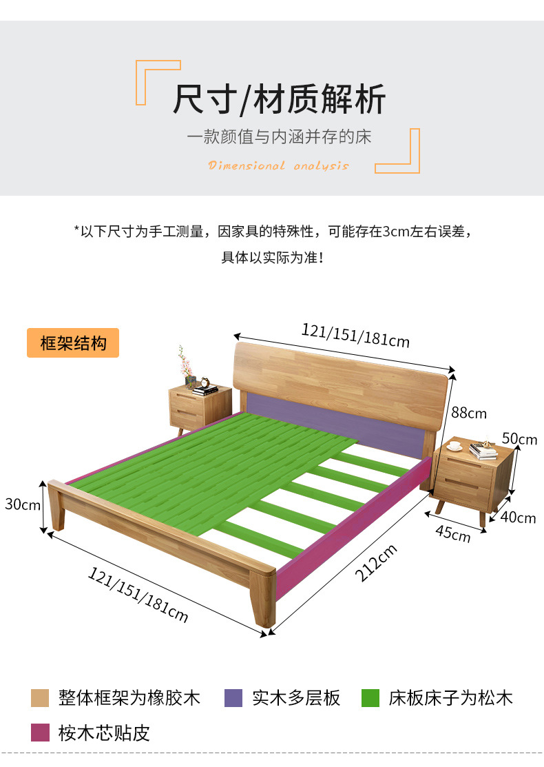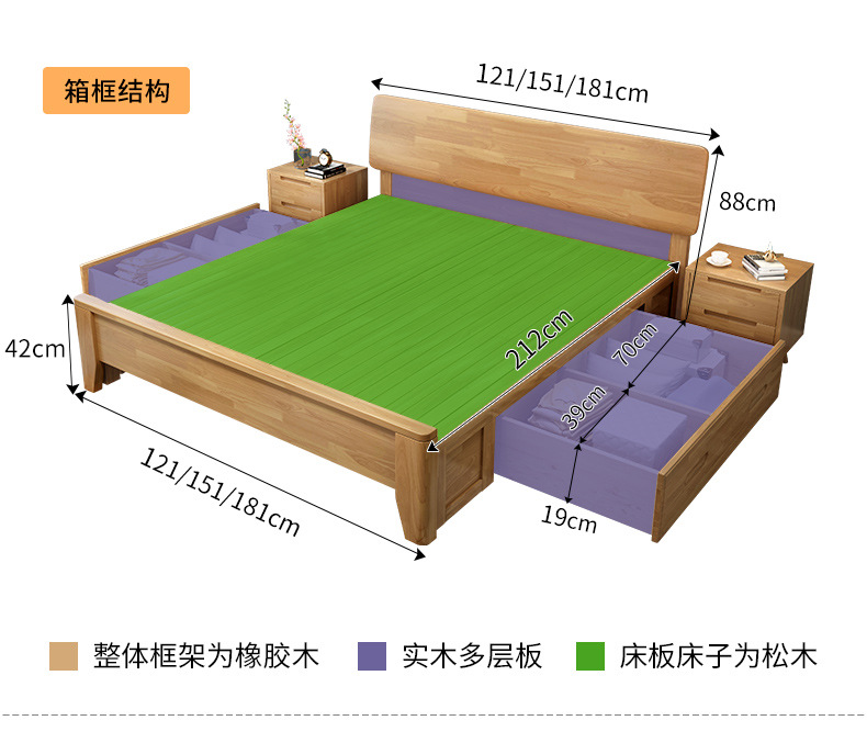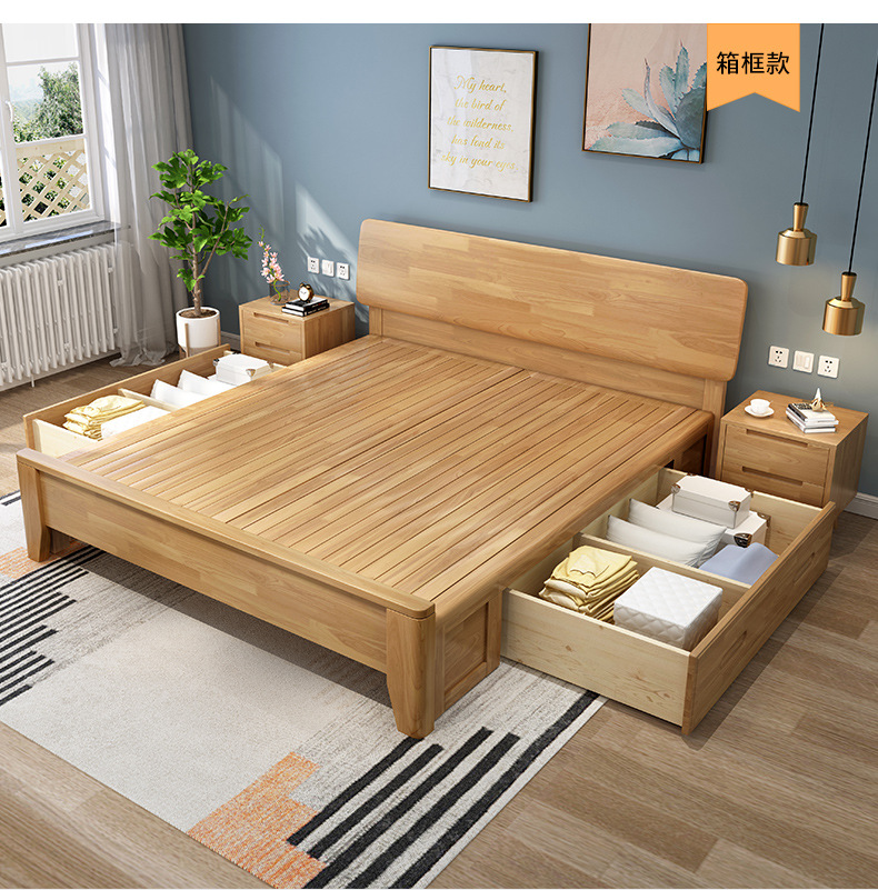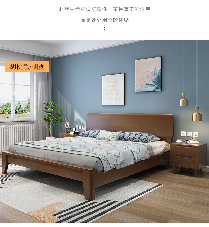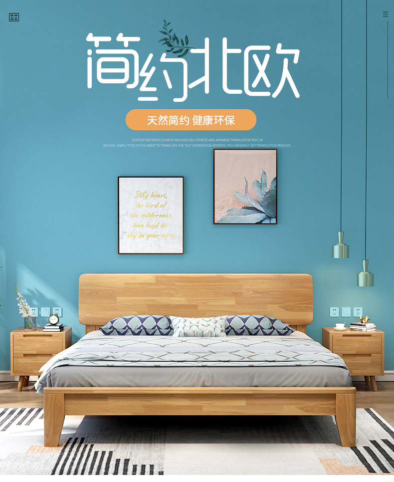 북유럽 모든 단단한 나무 침대 1.8 m 더블 침대 1.35 작은 아파트 1.2m 현대 간단한 일본어 1.5 m 경제적스토어 가기