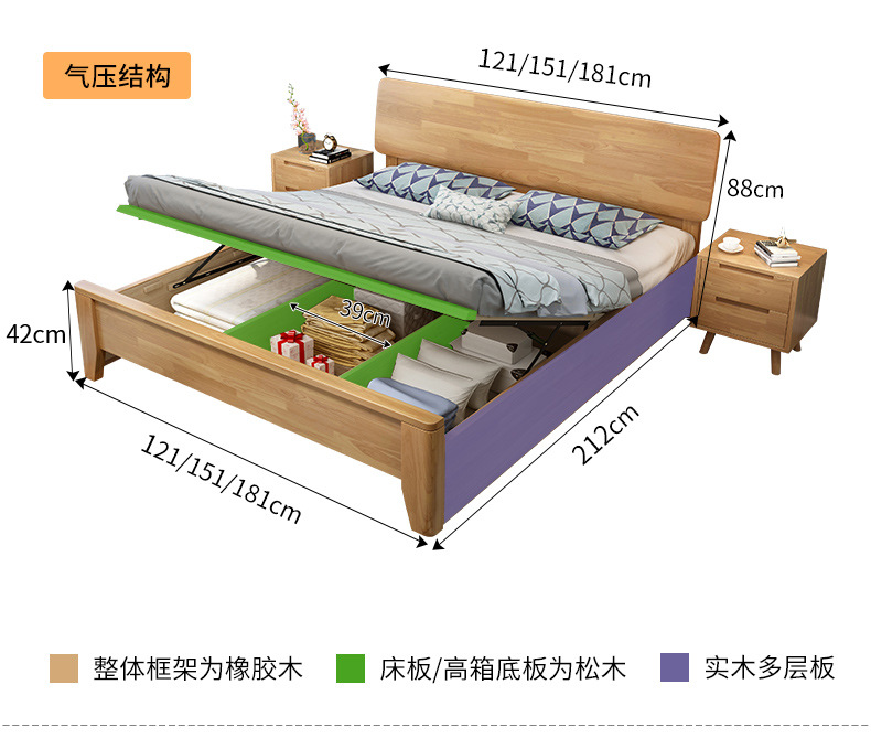 북유럽 모든 단단한 나무 침대 1.8 m 더블 침대 1.35 작은 아파트 1.2m 현대 간단한 일본어 1.5 m 경제적