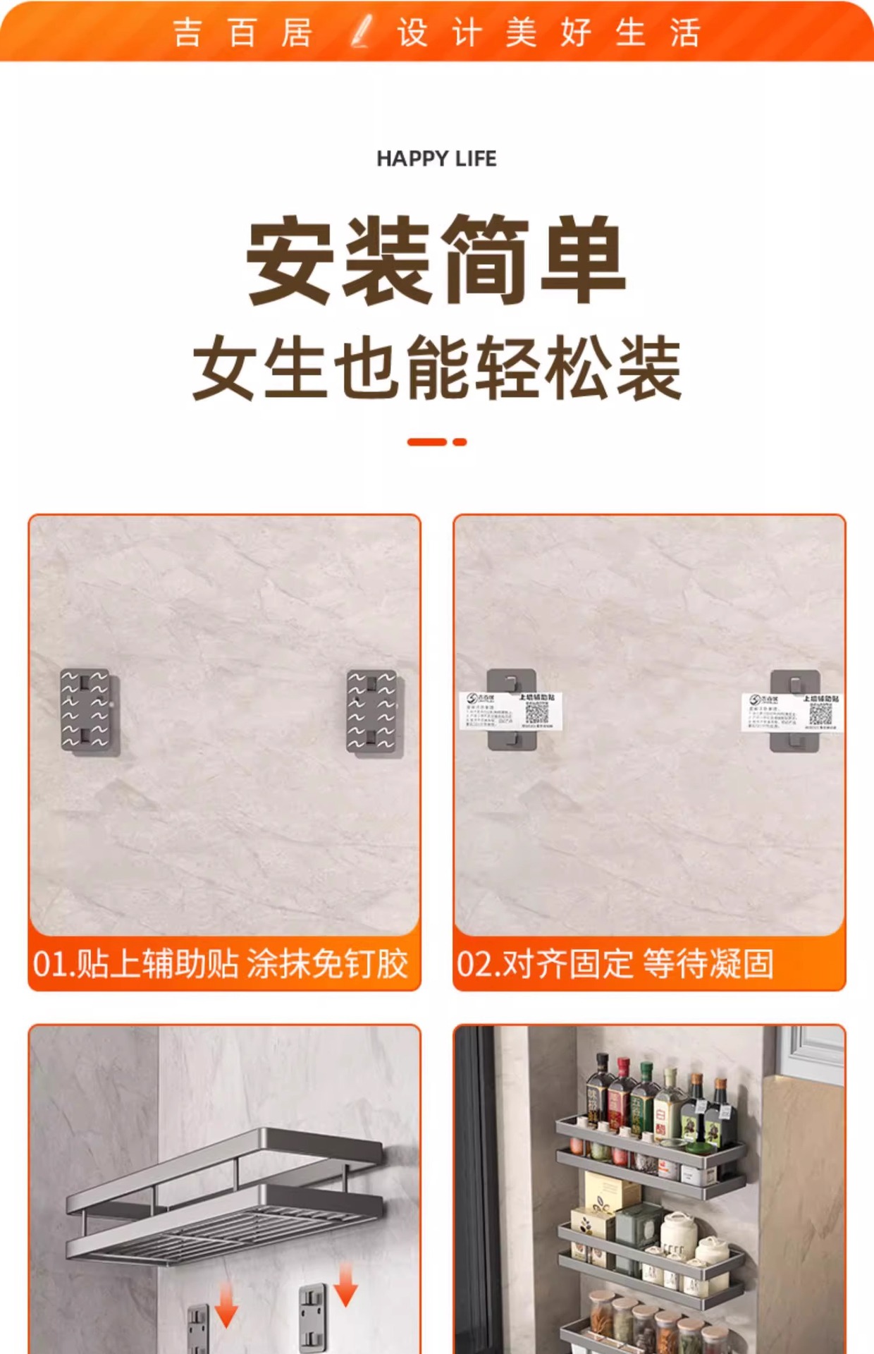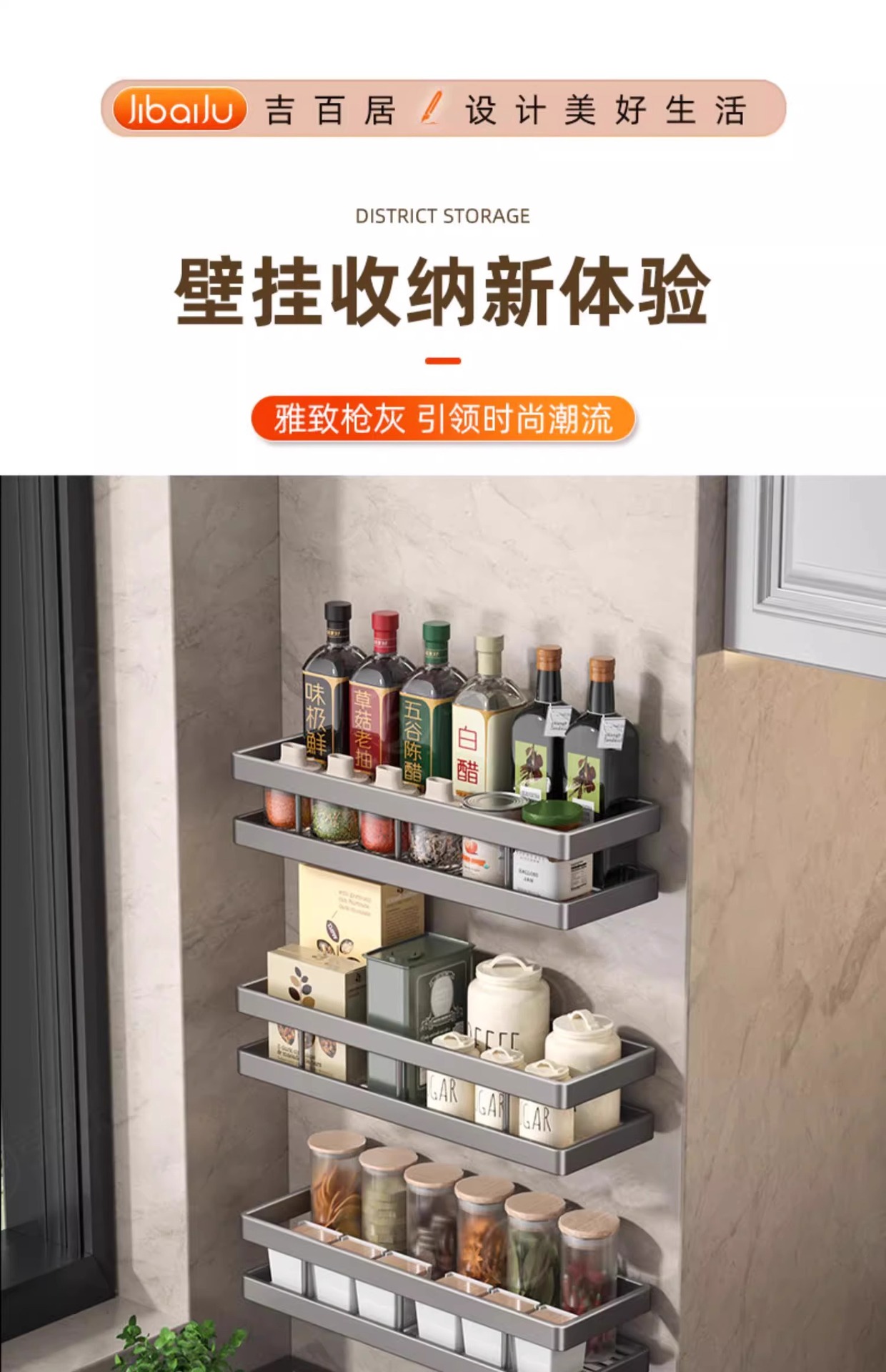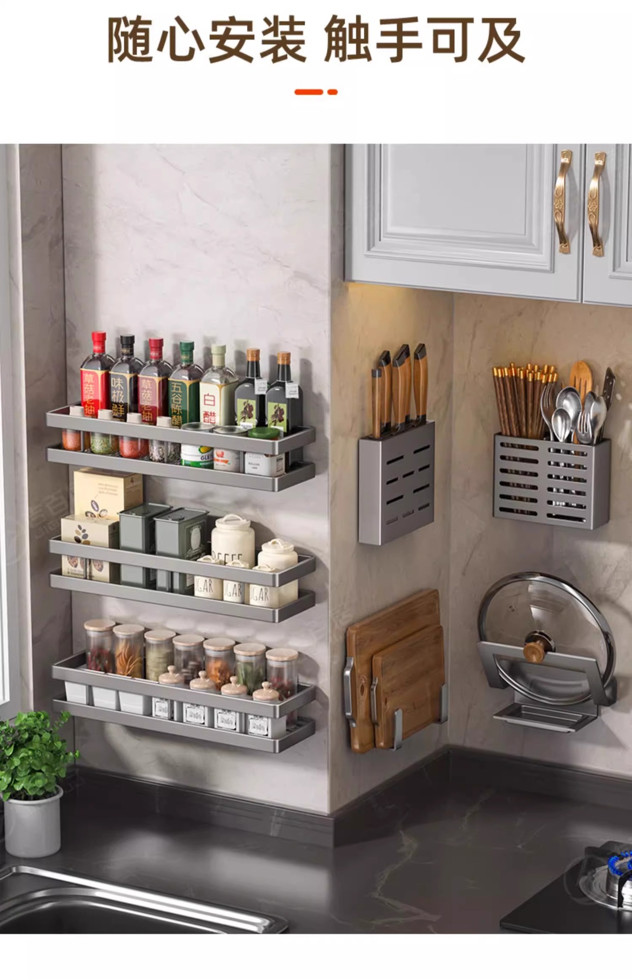 스테인레스 스틸 주방 수납 랙 벽걸이 형 다층 벽걸이 형 다기능 오일, 소금, 소스 및 식초 보관 랙