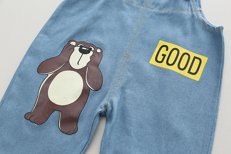 데님 스트랩 어린이 세트 남아 봄 2022 새로운 어린이 아기 스트라이프 캐주얼 스웨터 세트 유행스토어 가기