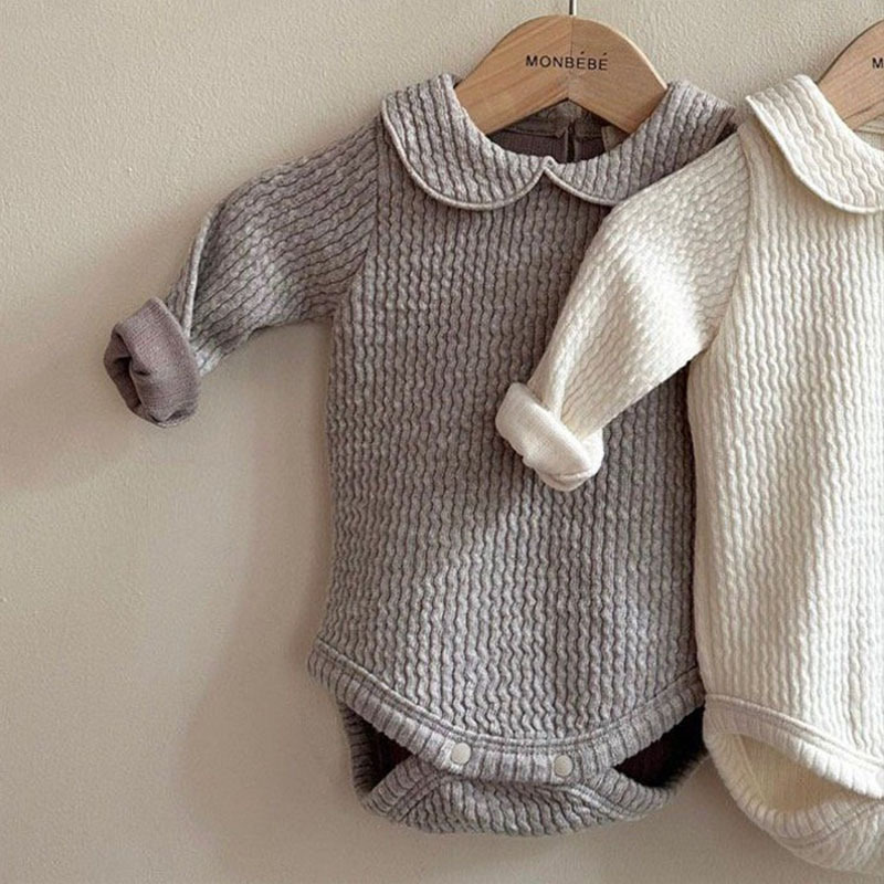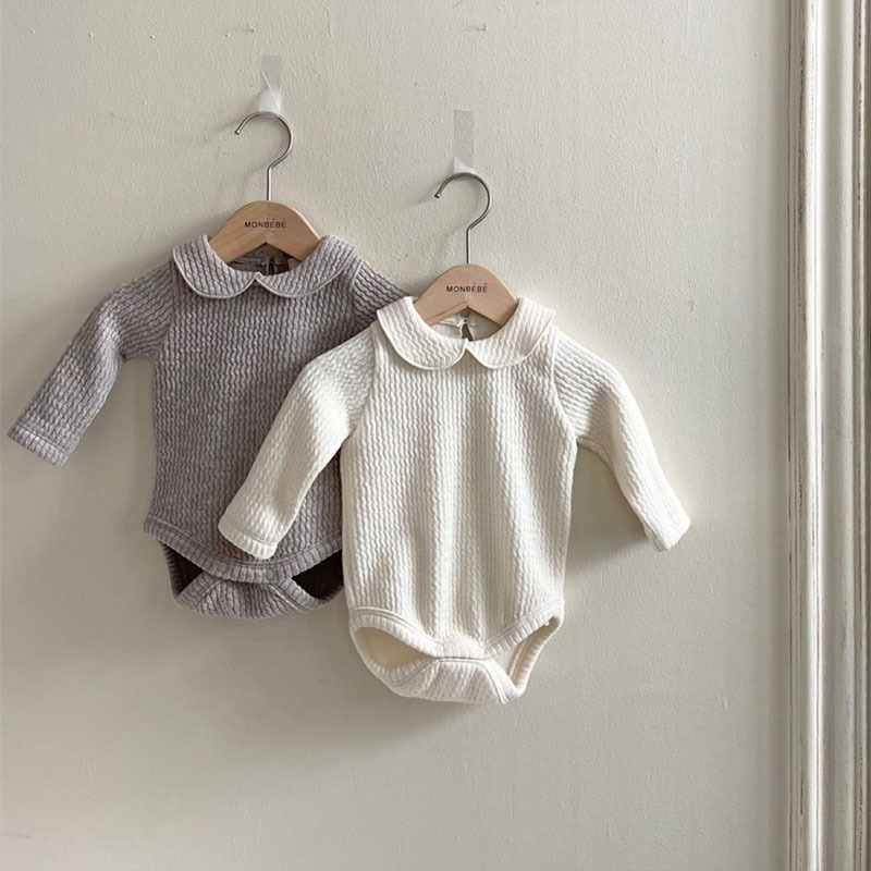 한국식 봄 남녀 아기 면 피부 친화적 인 인형 칼라 방귀 점프 슈트 등산 옷 아기 긴팔 모자