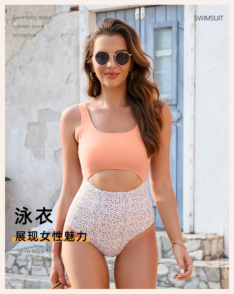 수영복 여성용 여름 새로운 섹시 대비 색상 유럽과 미국 수영복 복부 중공 원피스 수영복 U 자형 아름다운 등 온천 수영복스토어 가기