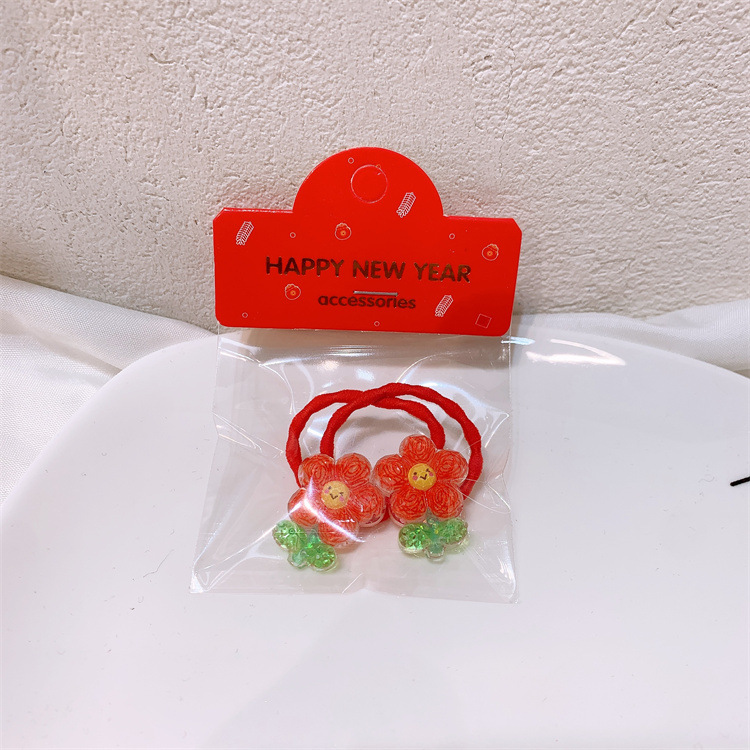 새해 빨간 축제 어린이 과일 헤어 링 귀여운 만화 토끼 머리 밧줄 아기 헤어 밴드 헤어 로프스토어 가기