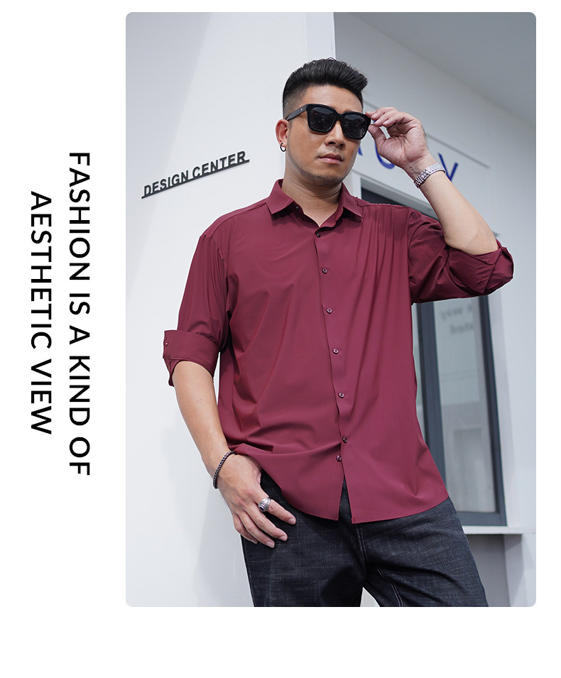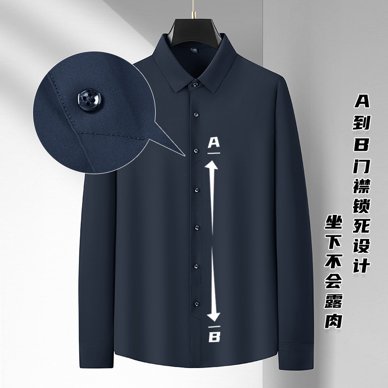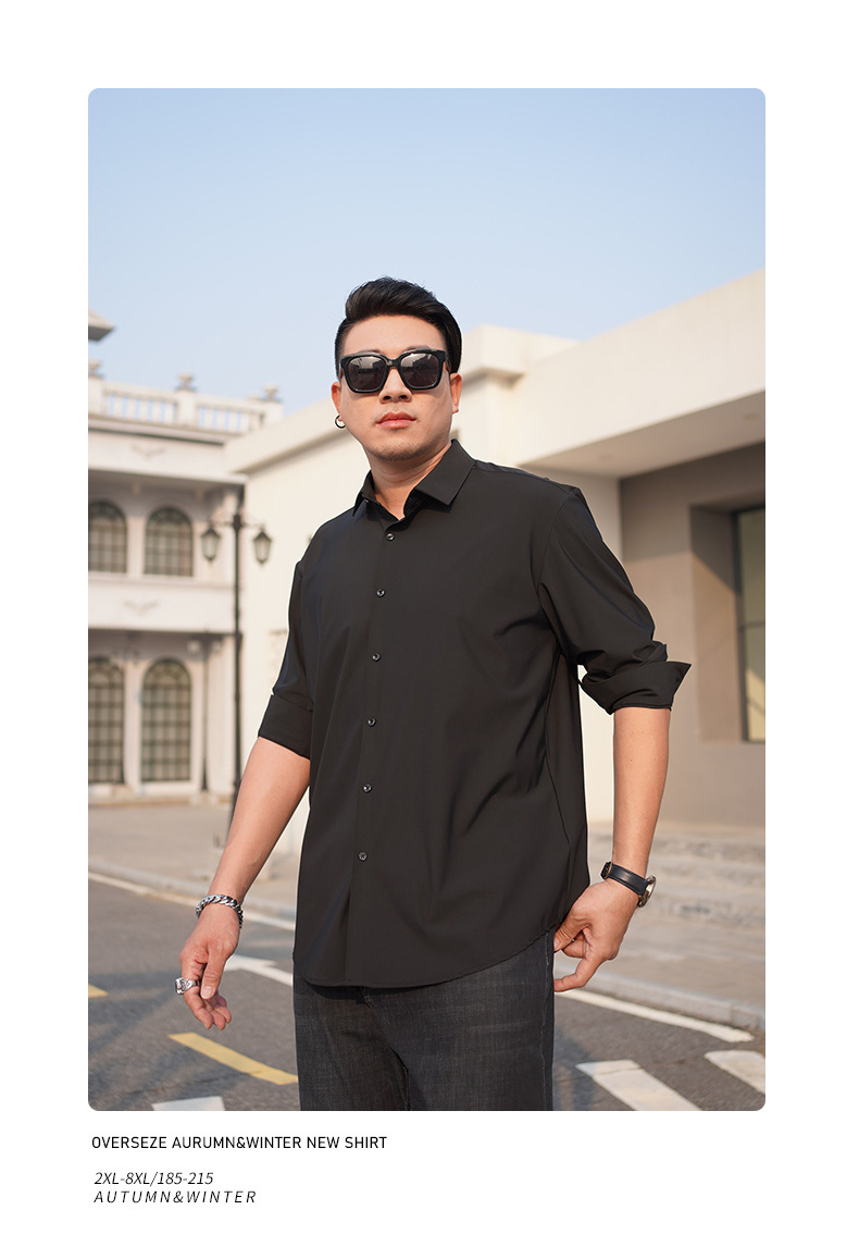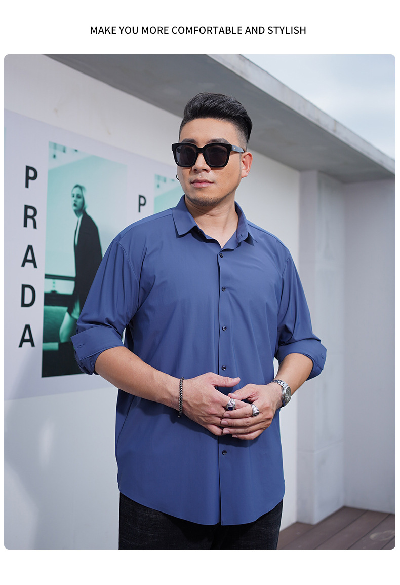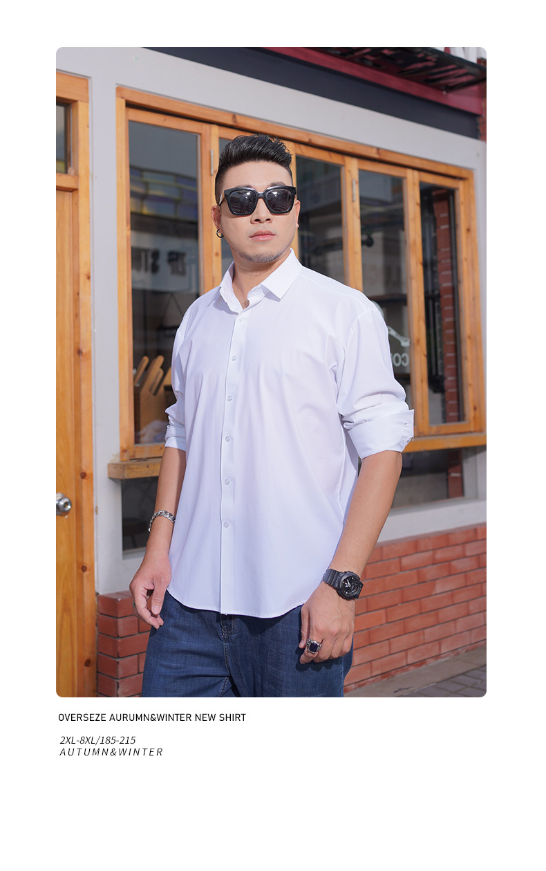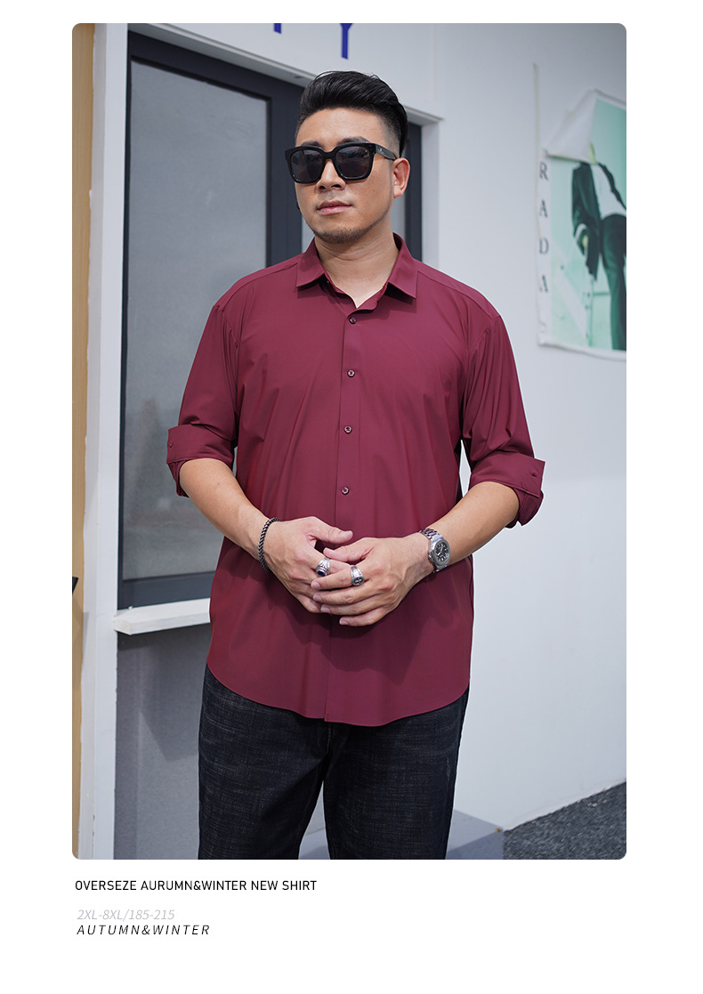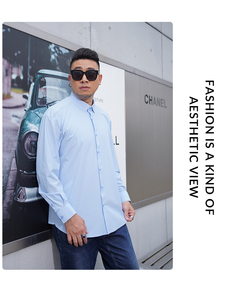 봄과 가을 새로운 플러스 사이즈 남자의 긴팔 셔츠 통통한 형제의 비 마킹 다림질 높은 탄성 단색 캐주얼 셔츠 플러스 뚱뚱한 플러스 사이즈스토어 가기
