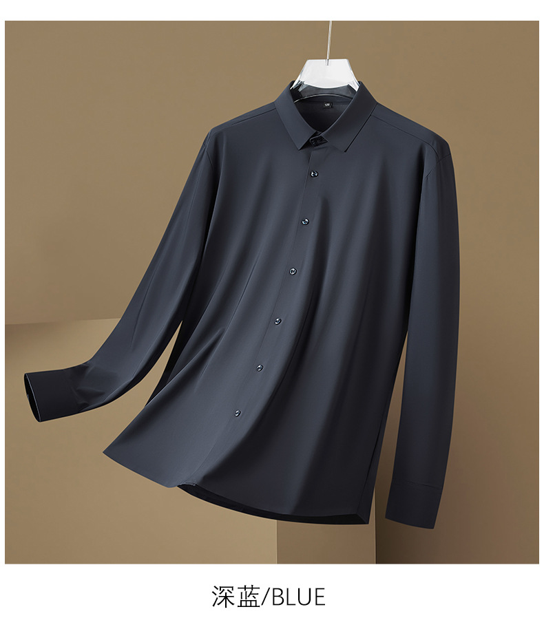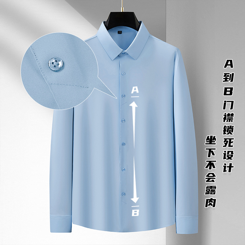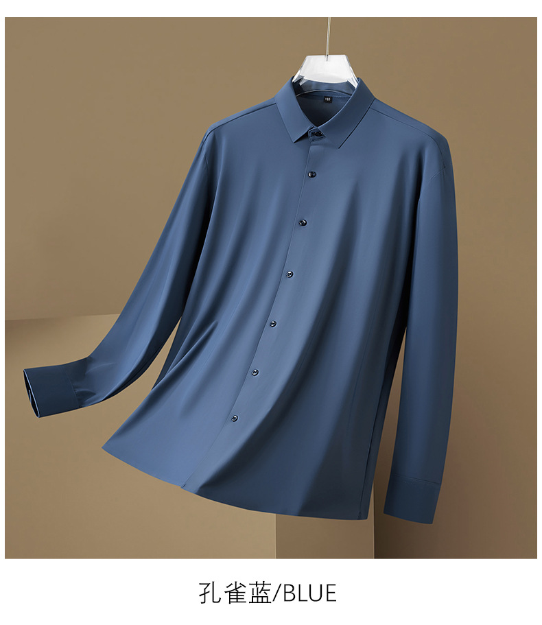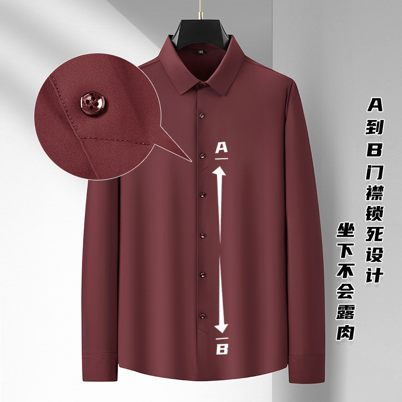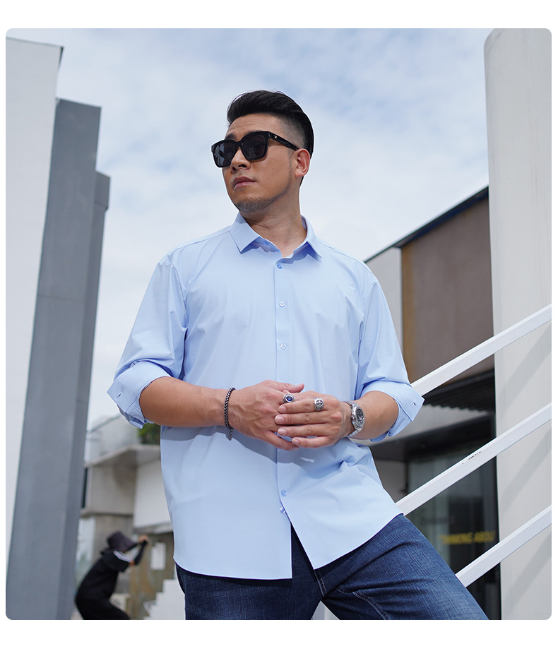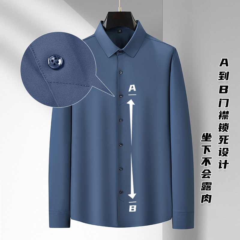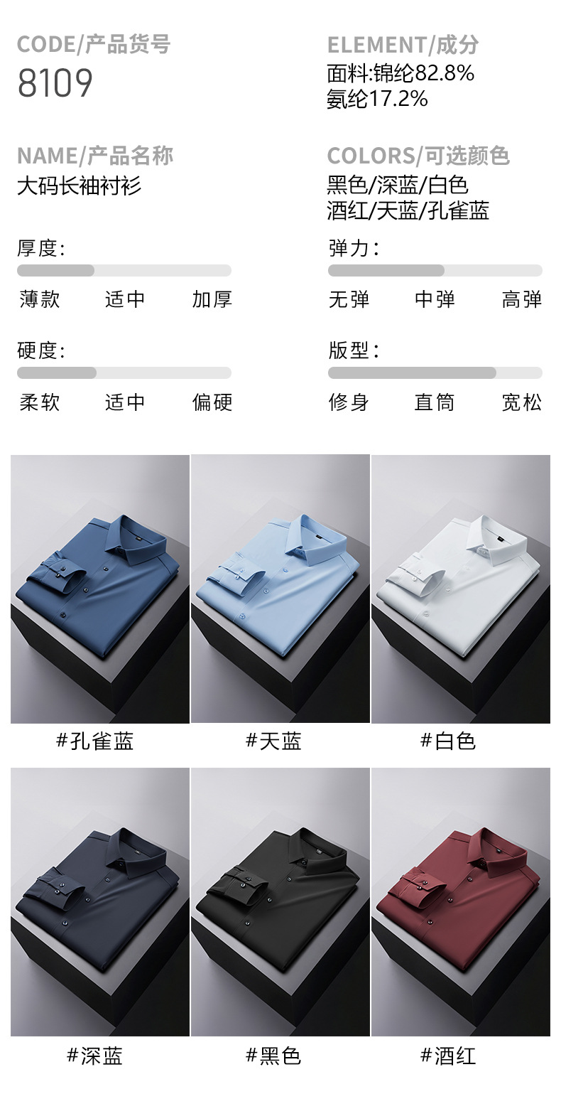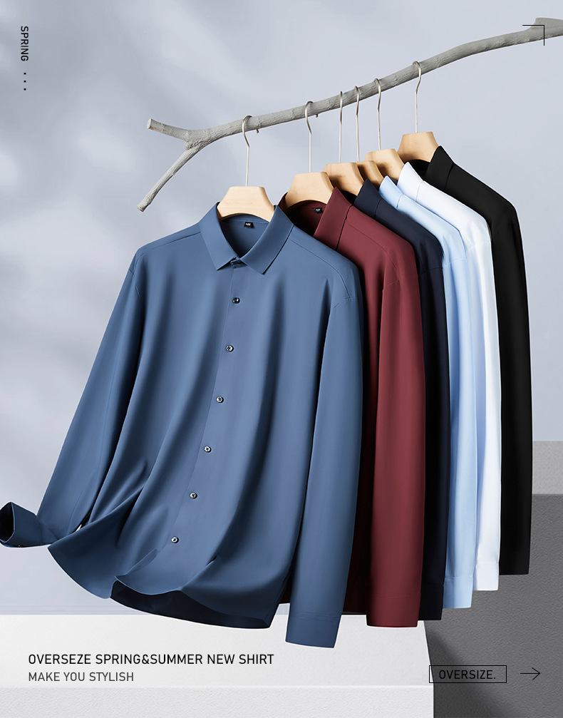 봄과 가을 새로운 플러스 사이즈 남자의 긴팔 셔츠 통통한 형제의 비 마킹 다림질 높은 탄성 단색 캐주얼 셔츠 플러스 뚱뚱한 플러스 사이즈스토어 가기