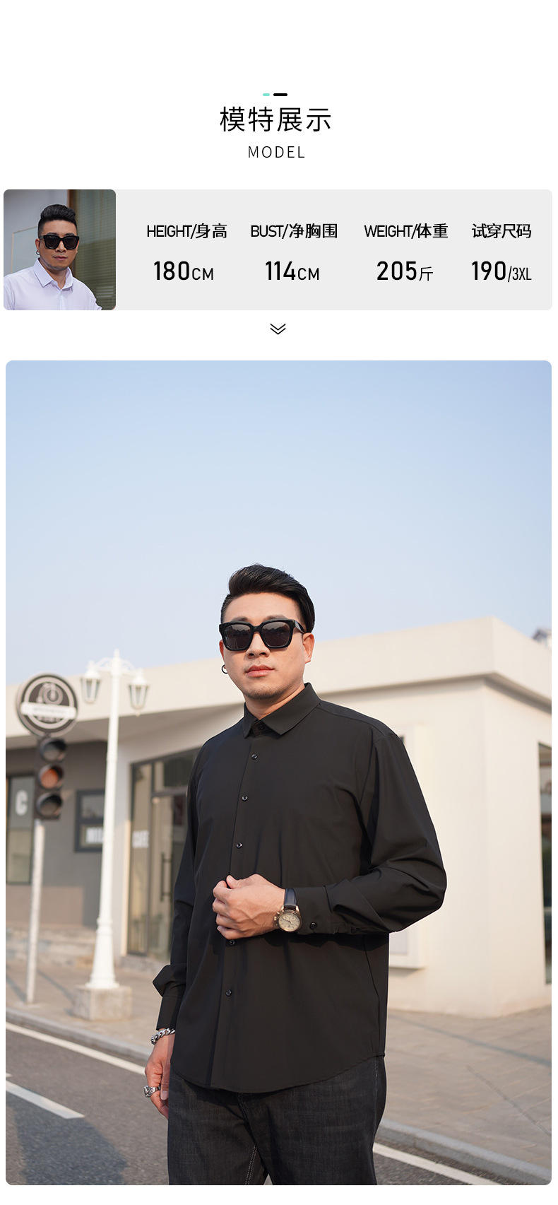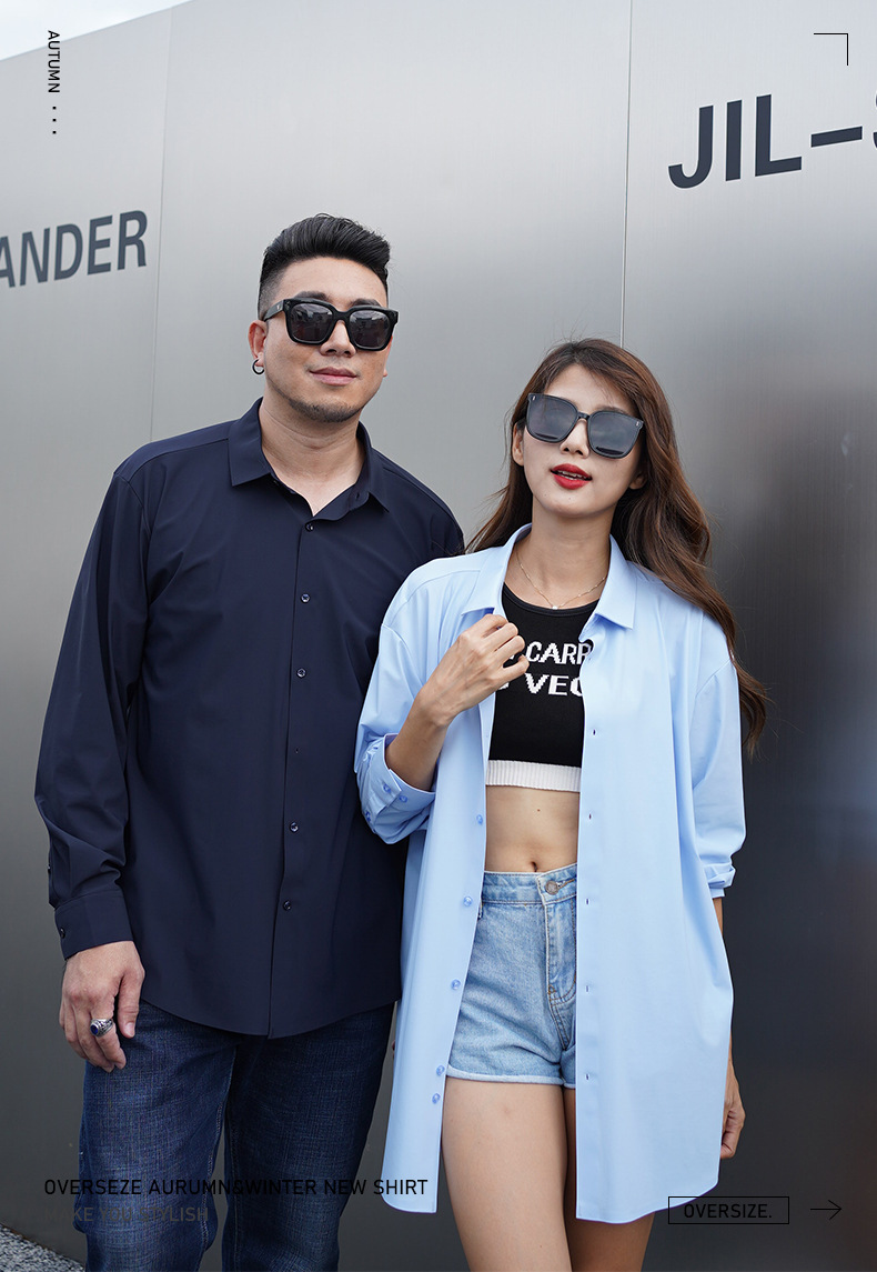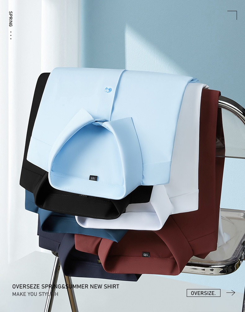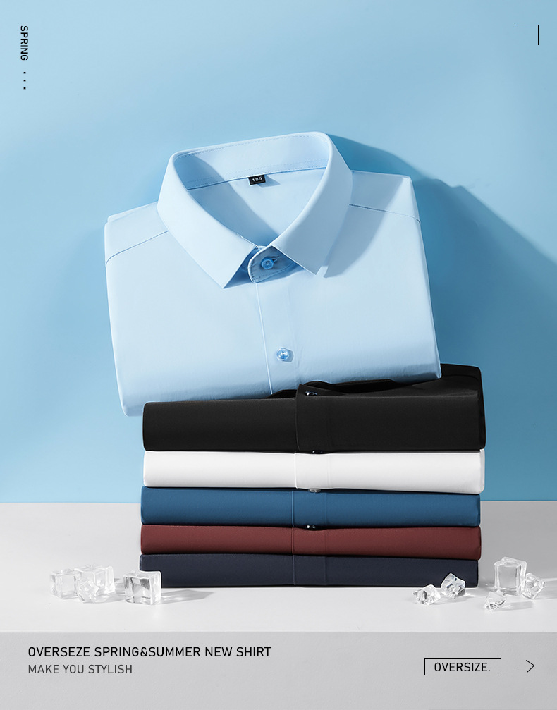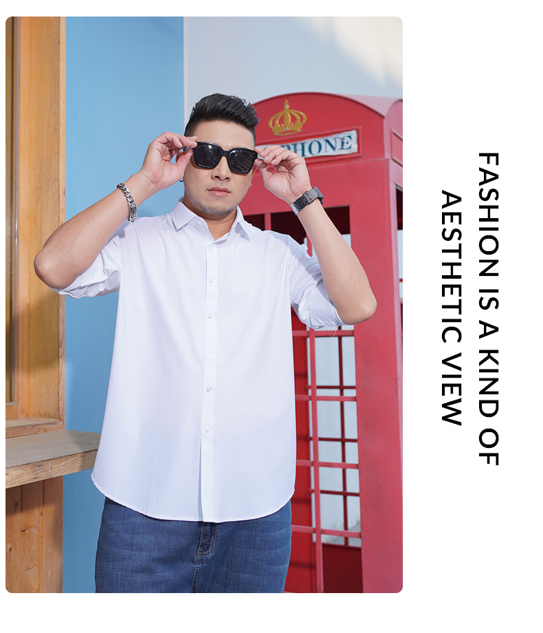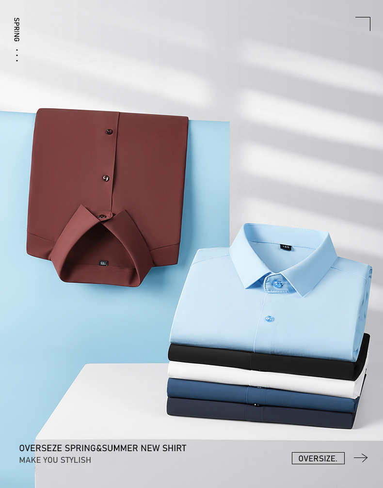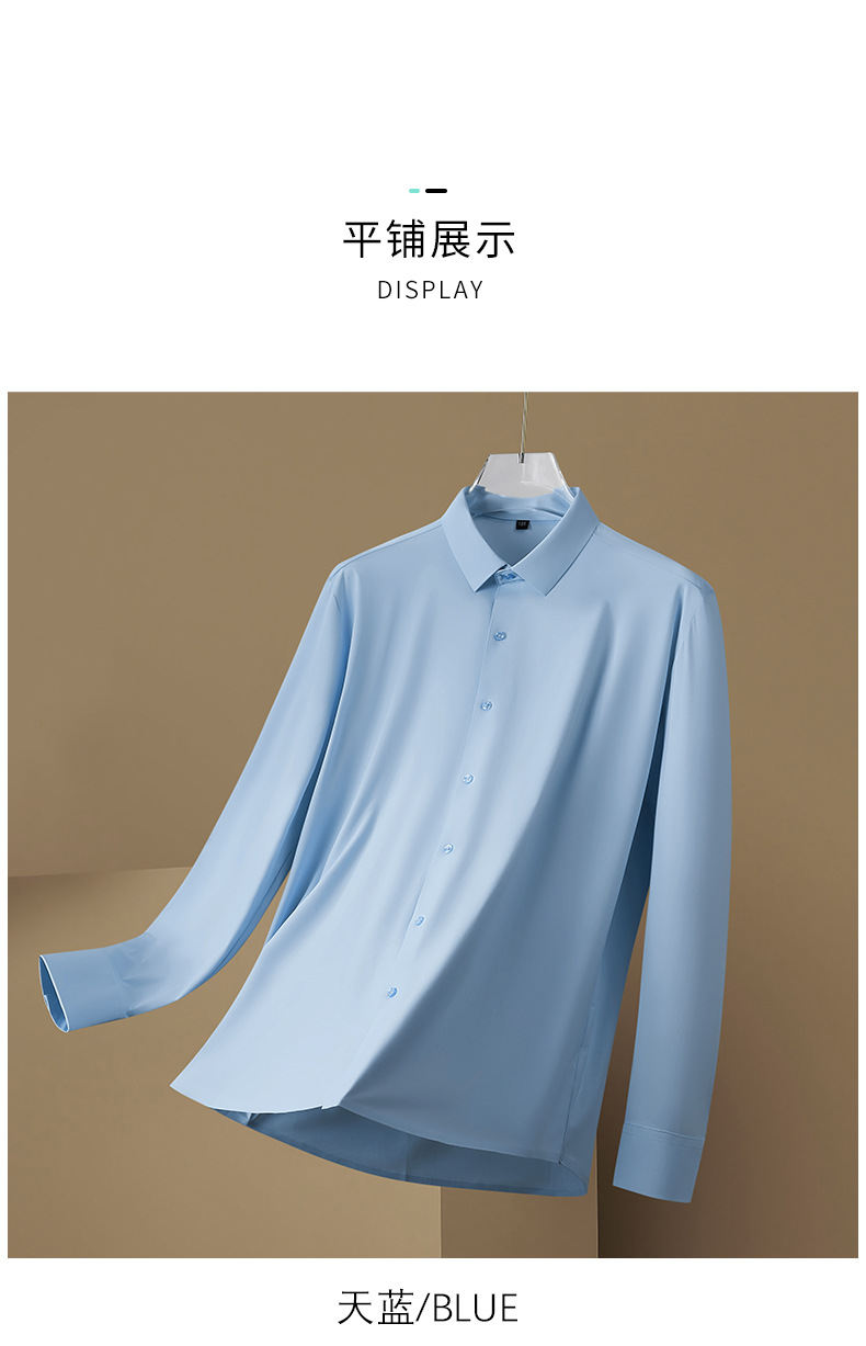 봄과 가을 새로운 플러스 사이즈 남자의 긴팔 셔츠 통통한 형제의 비 마킹 다림질 높은 탄성 단색 캐주얼 셔츠 플러스 뚱뚱한 플러스 사이즈스토어 가기