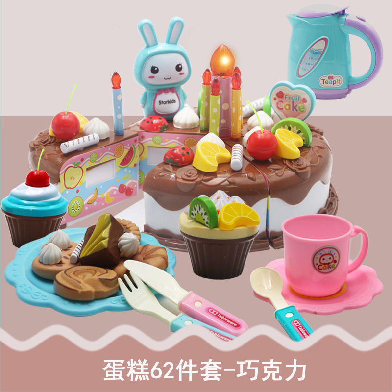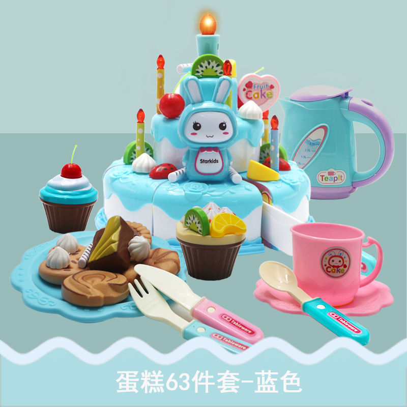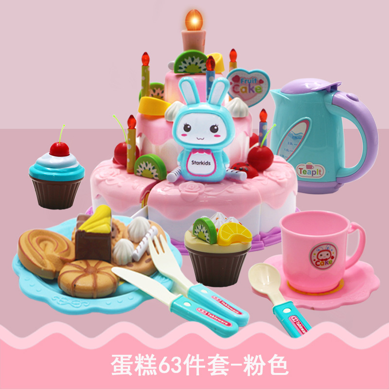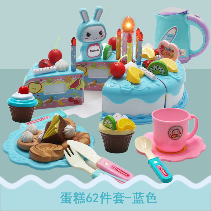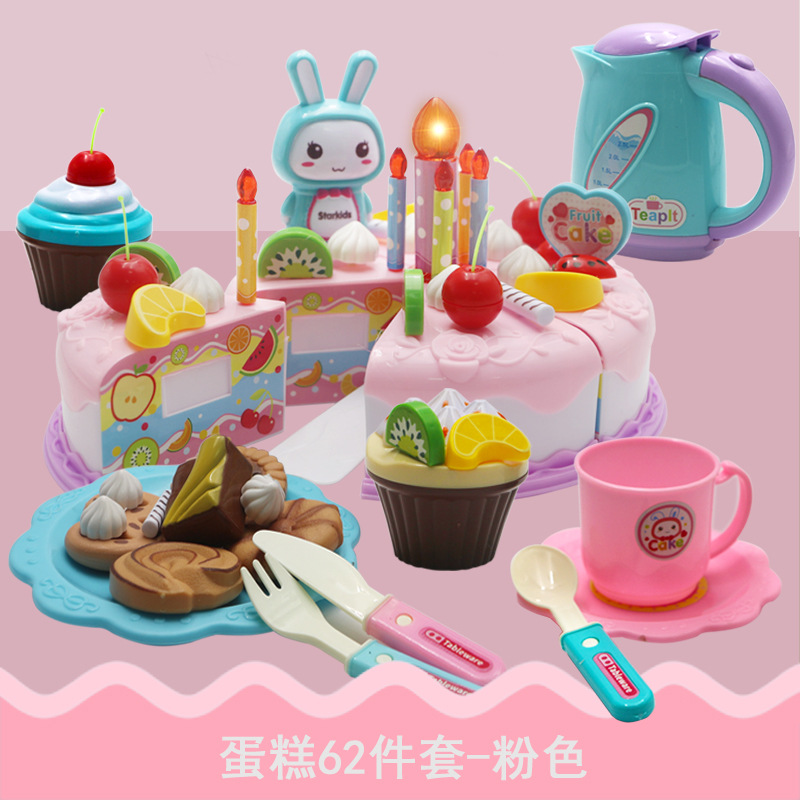 어린이 시뮬레이션 놀이 집 케이크 절단 주방 과일 절단 음악 6 생일 선물 장난감 소녀와 소년 세트 3 세스토어 가기