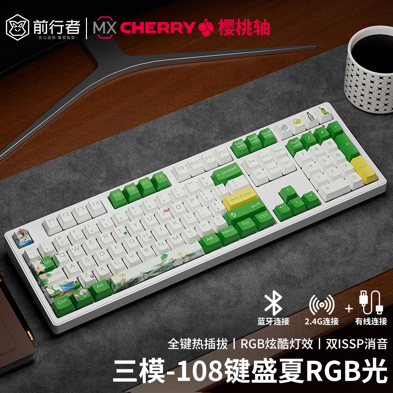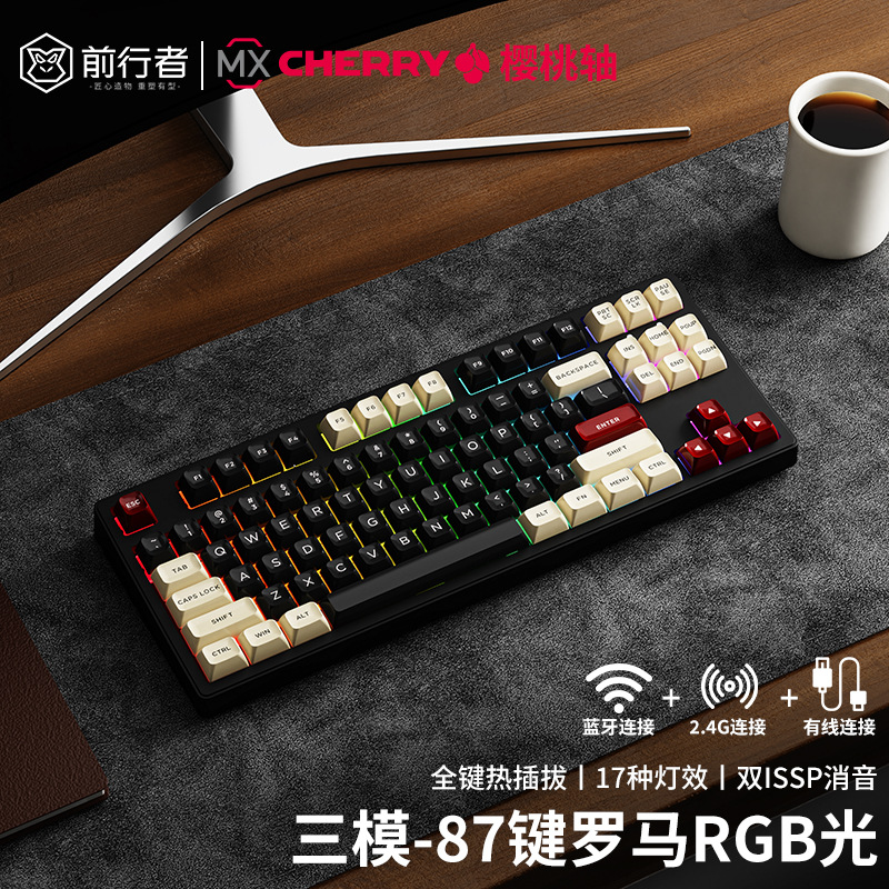 선두 주자 Z108 체리 체리 샤프트 기계식 키보드 유선 무선 블루투스 3 모드 블랙 레드 샤프트 게임스토어 가기