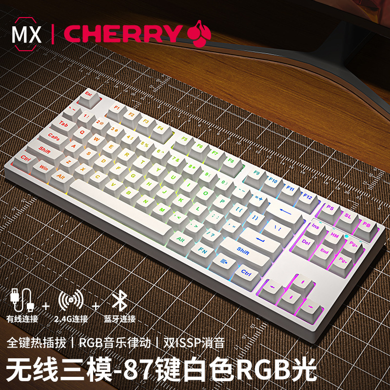 • 화이트 87 키 [RGB] 무선 블루투스 트라이 모드