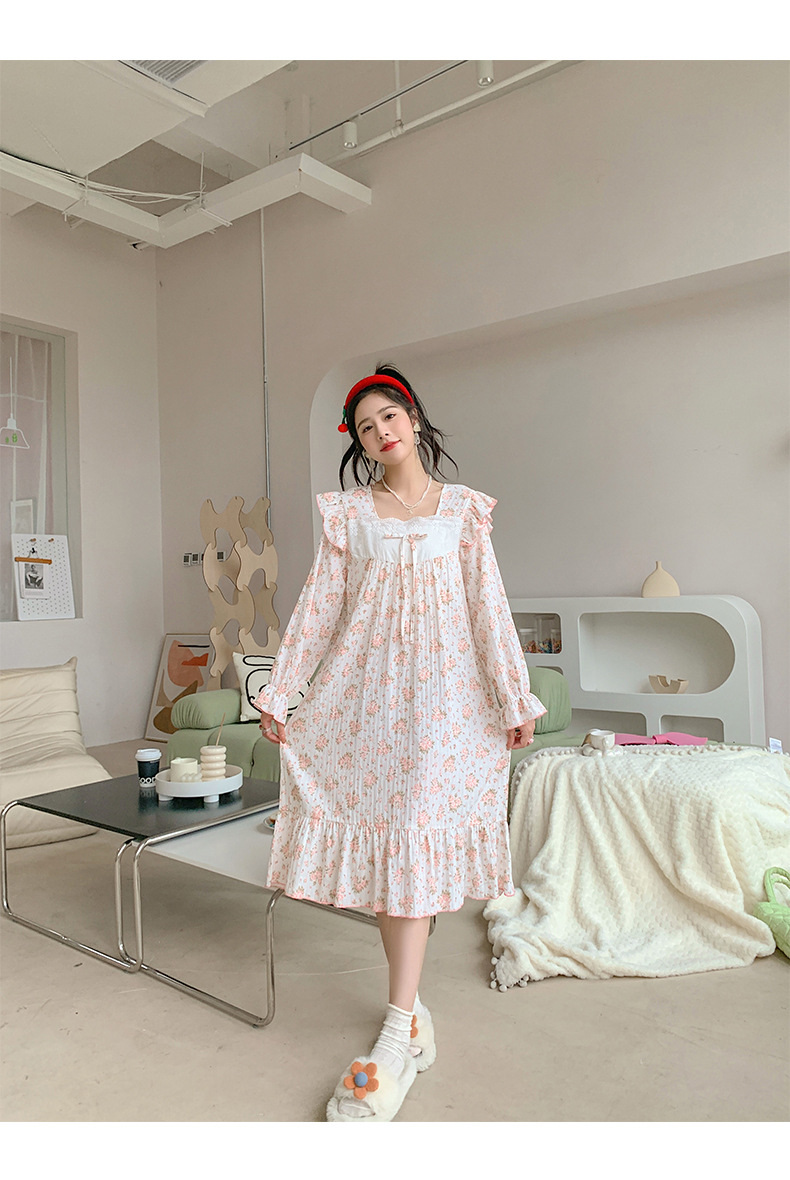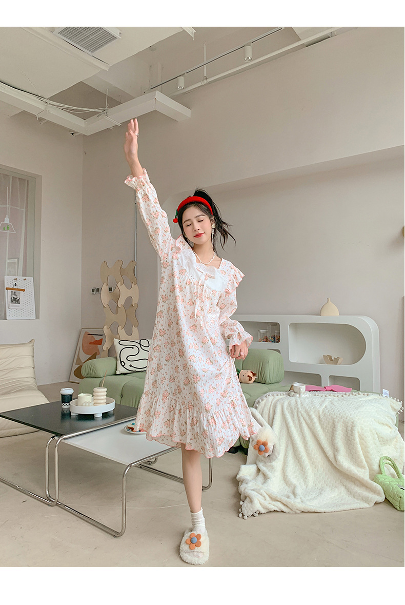 일본식 달콤한 꽃 면 잠옷 여자의 2023 봄 느슨한 잠옷 달콤한 가정 옷