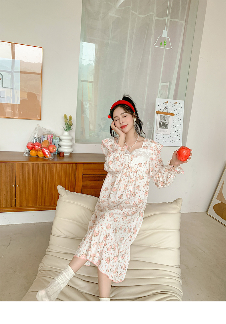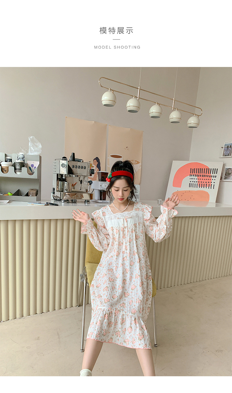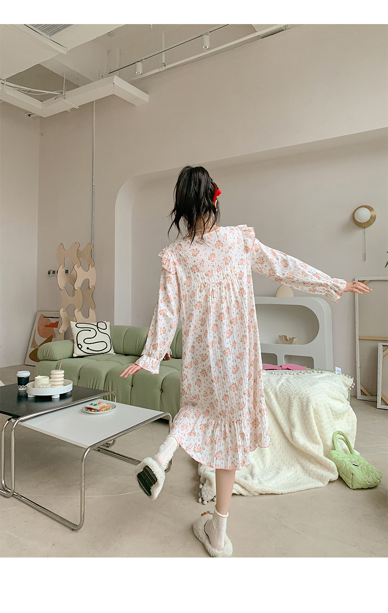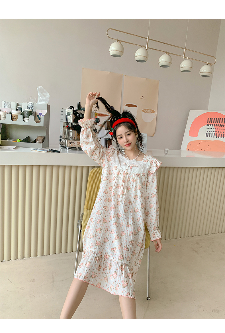 일본식 달콤한 꽃 면 잠옷 여자의 2023 봄 느슨한 잠옷 달콤한 가정 옷스토어 가기