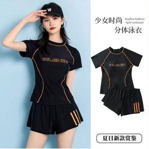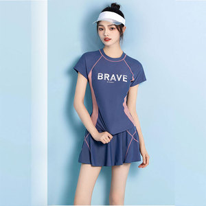 泳衣女韩国ins学生新款潮分体海军风两件套运动短袖保守平角裙式