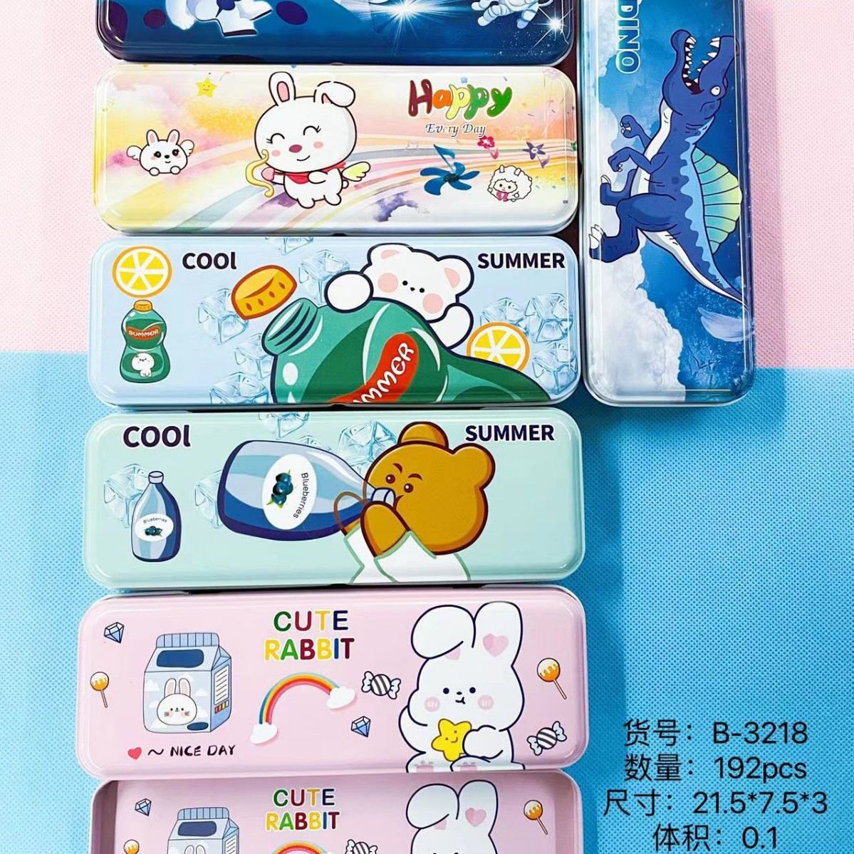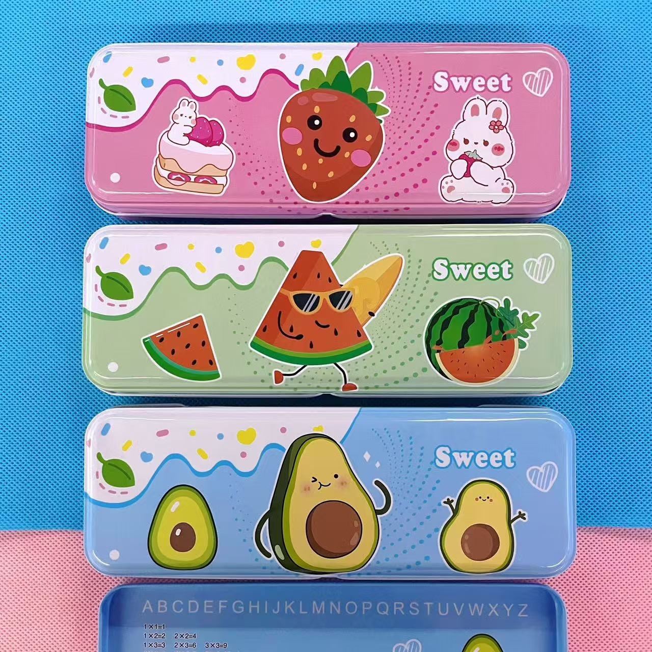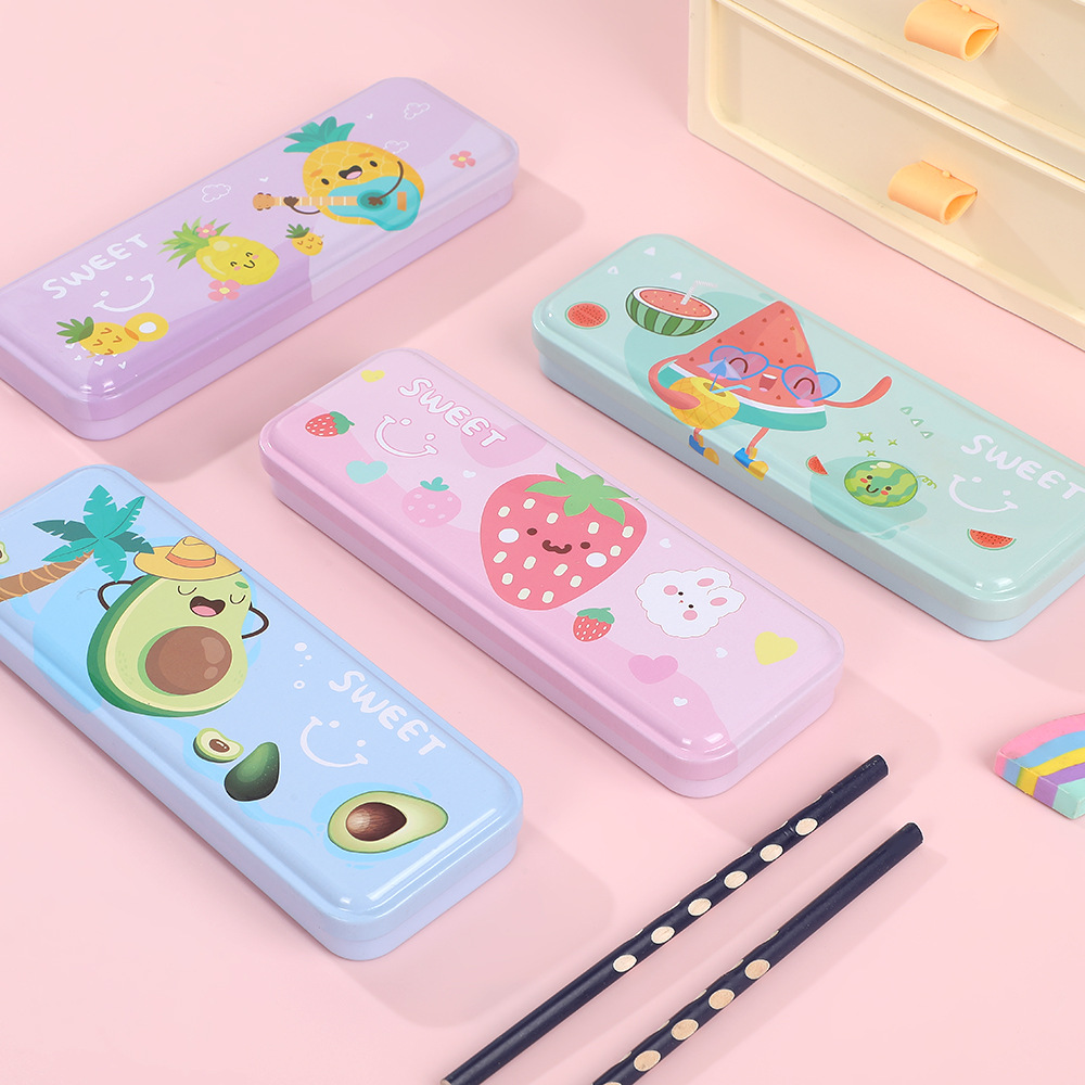 학용품 만화 과일 철 필통 아동 문구 초등학교 문구 2 층 피팅 틴플레이트 펜스토어 가기