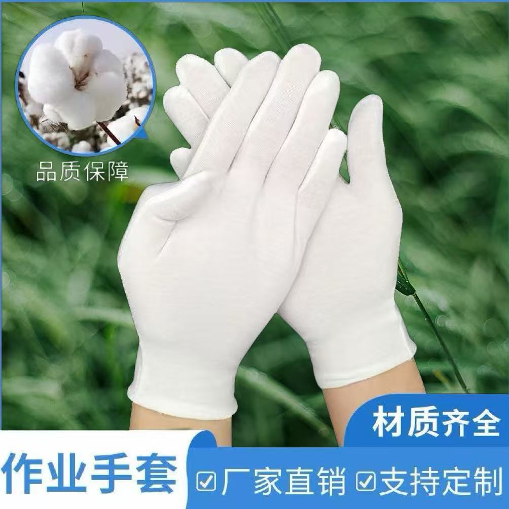 흰색 장갑, 순면, 부드럽고 통기성이 좋은 두꺼운 흰색 면장갑, 공장 노동 보호 장갑, 문예 및 예식용 흰색 장갑