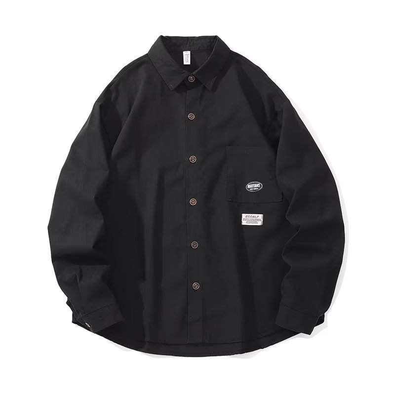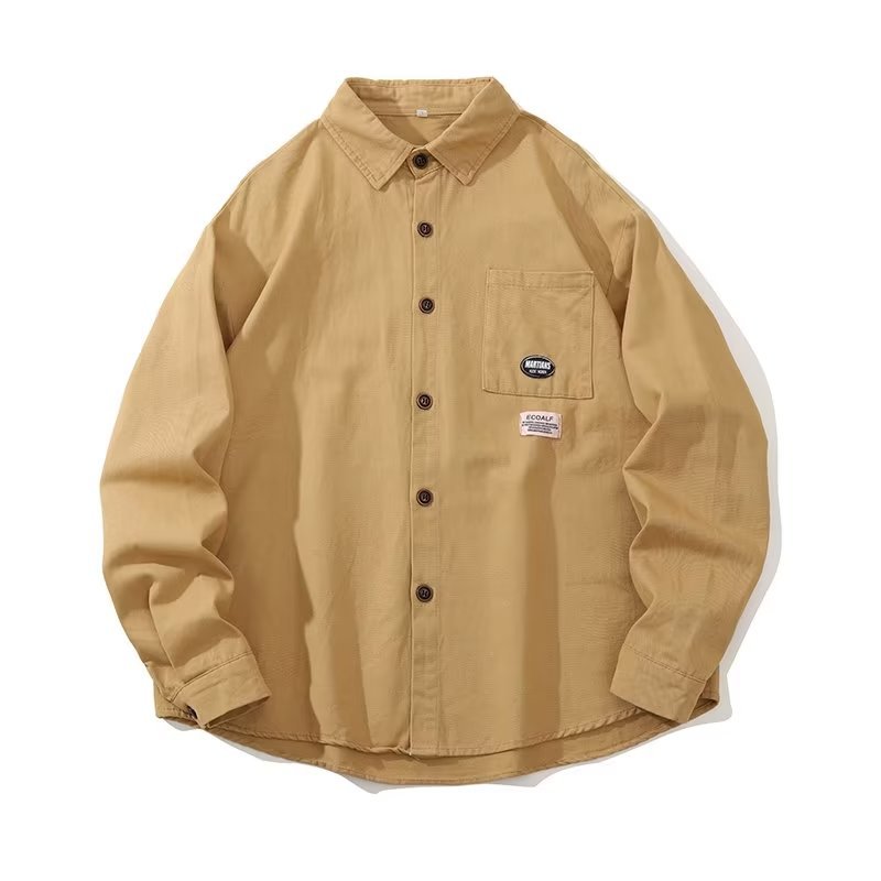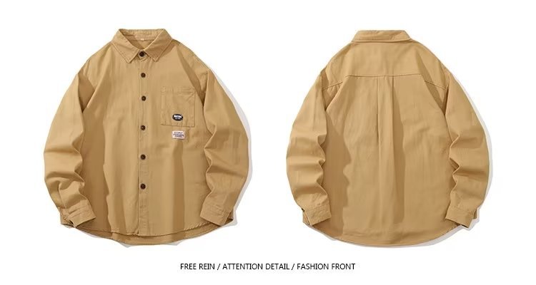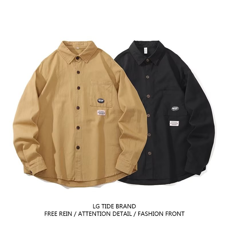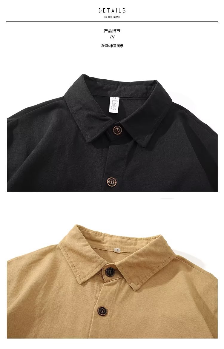 바지 셔츠 남자의 긴팔 일본 스타일 빈티지 느슨한 셔츠 플러스 사이즈 한국 스타일 유행 순면 라펠 캐주얼 탑스토어 가기