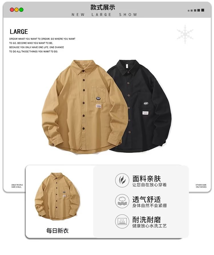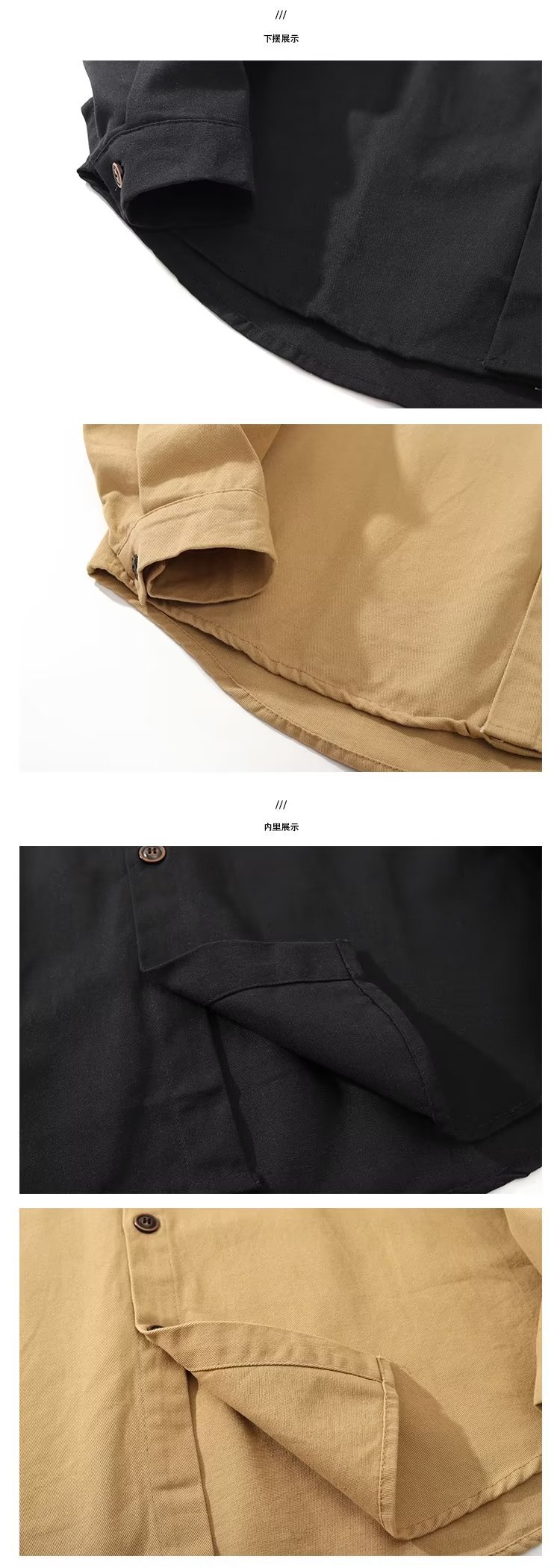 바지 셔츠 남자의 긴팔 일본 스타일 빈티지 느슨한 셔츠 플러스 사이즈 한국 스타일 유행 순면 라펠 캐주얼 탑