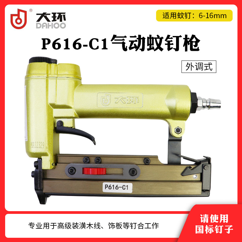 큰 반지 616 공압 모기 못 총 스트레이트 네일 건 목공 장식 도구 에어 네일 건 8mm 헤드리스 네일 건