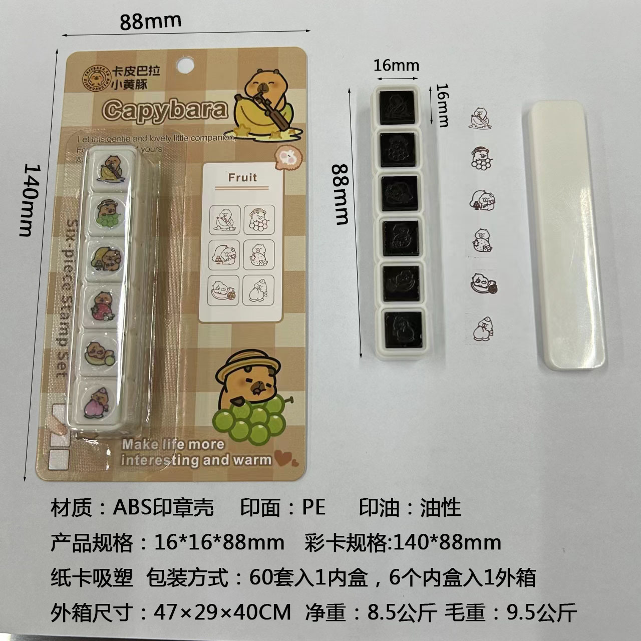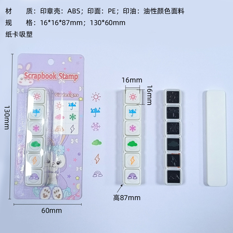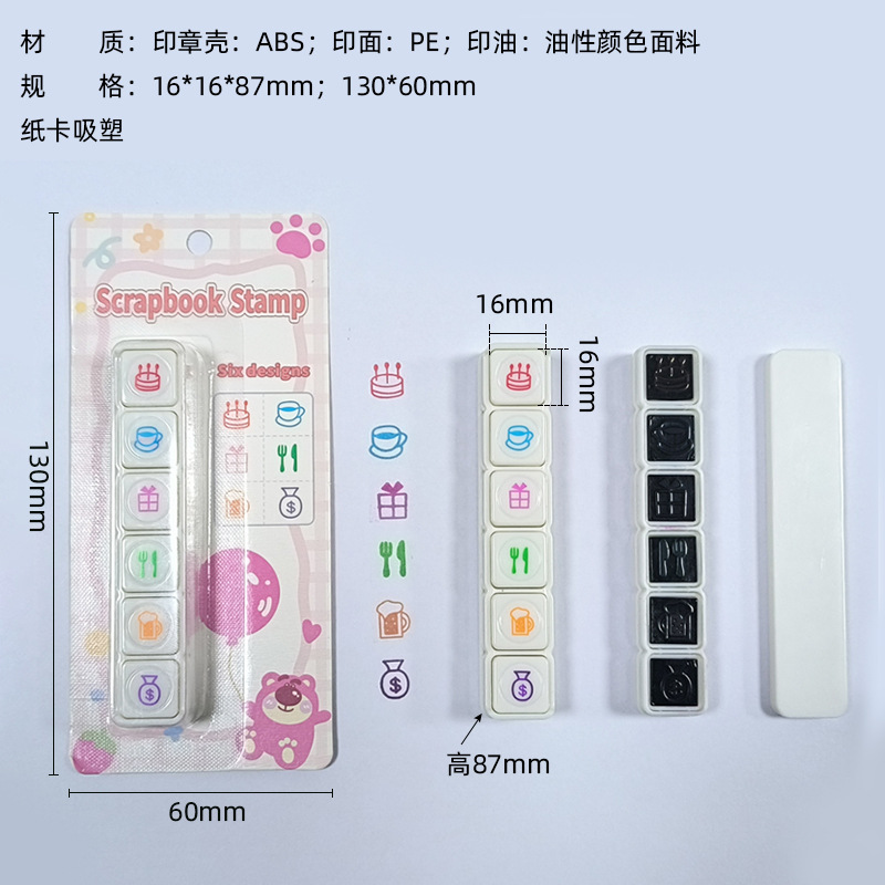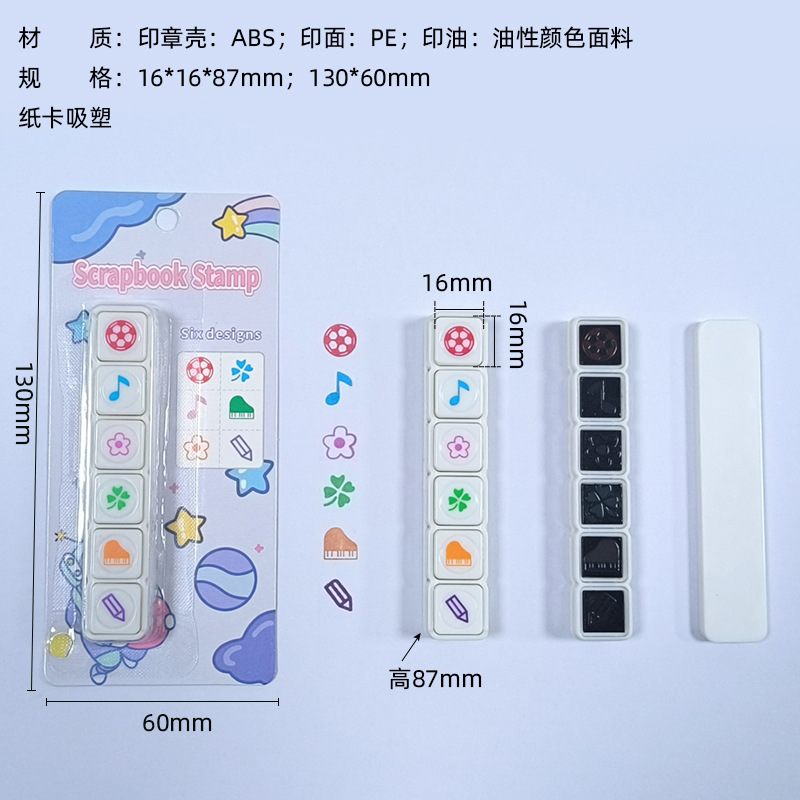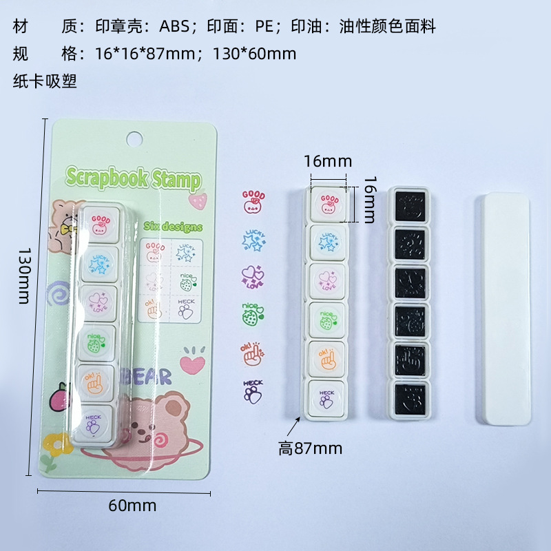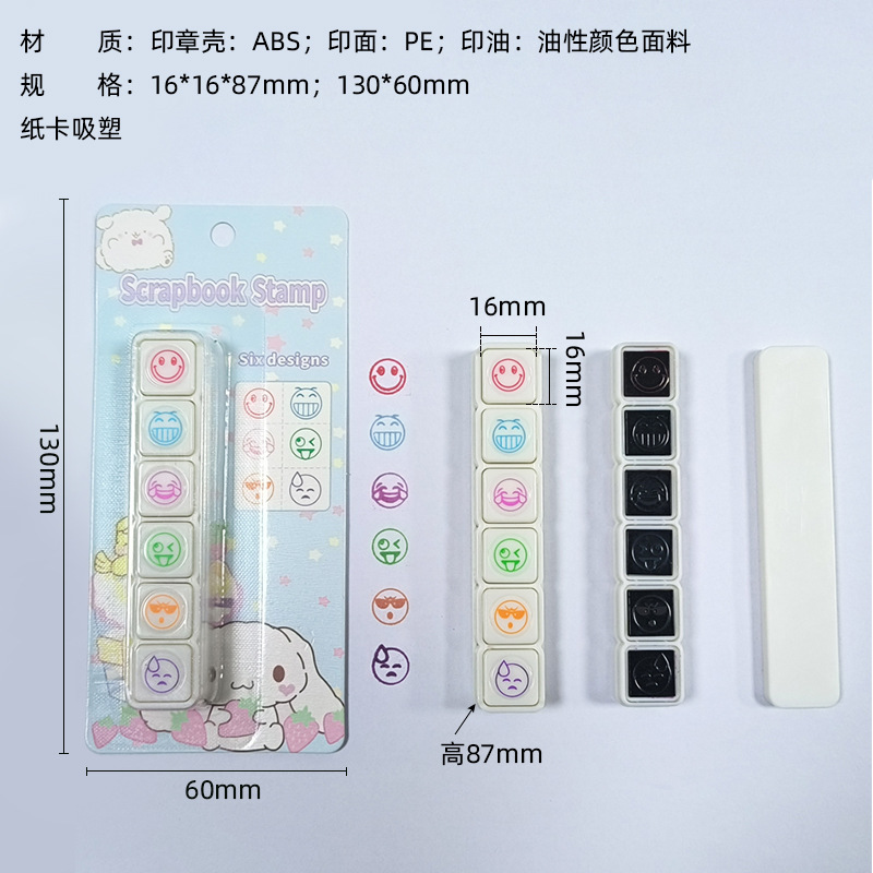 프레스형 6구 도장 창의적인 만화 패턴 작은 도장 귀여운 미니 DIY 학생용 도장 해외 배송