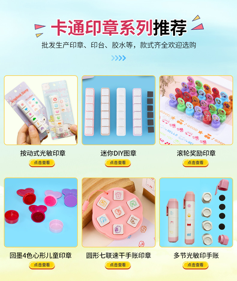 프레스형 6구 도장 창의적인 만화 패턴 작은 도장 귀여운 미니 DIY 학생용 도장 해외 배송스토어 가기