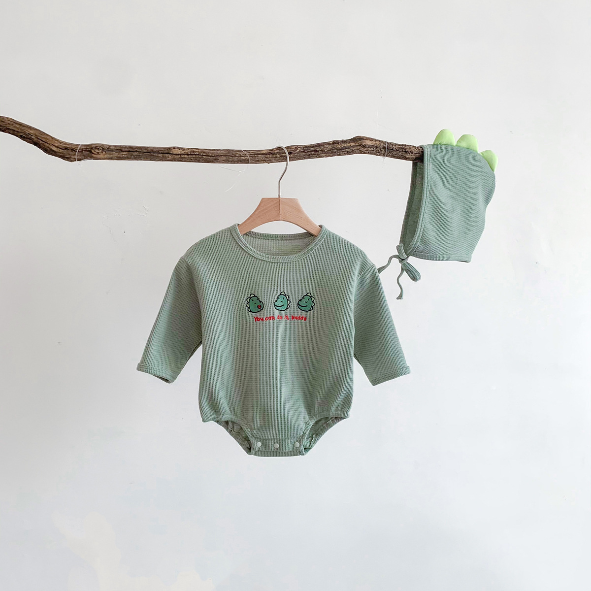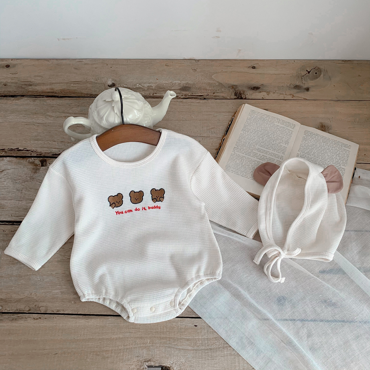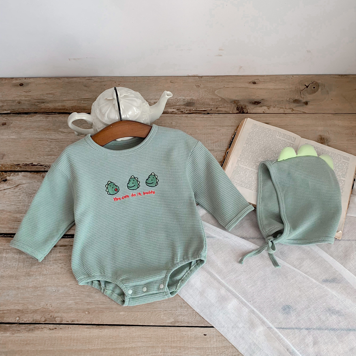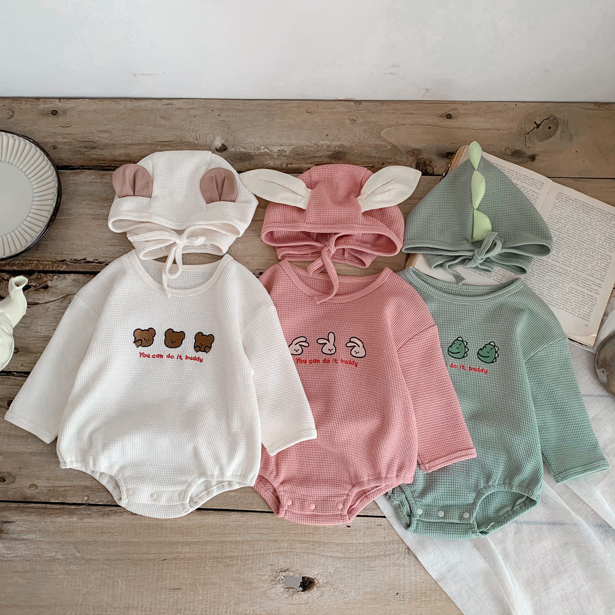 아기 가을 새로운 남자와 여자의 아기 가방 방귀 하 옷 어린이 와플 만화 인쇄 원피스 등산 세트 모자스토어 가기