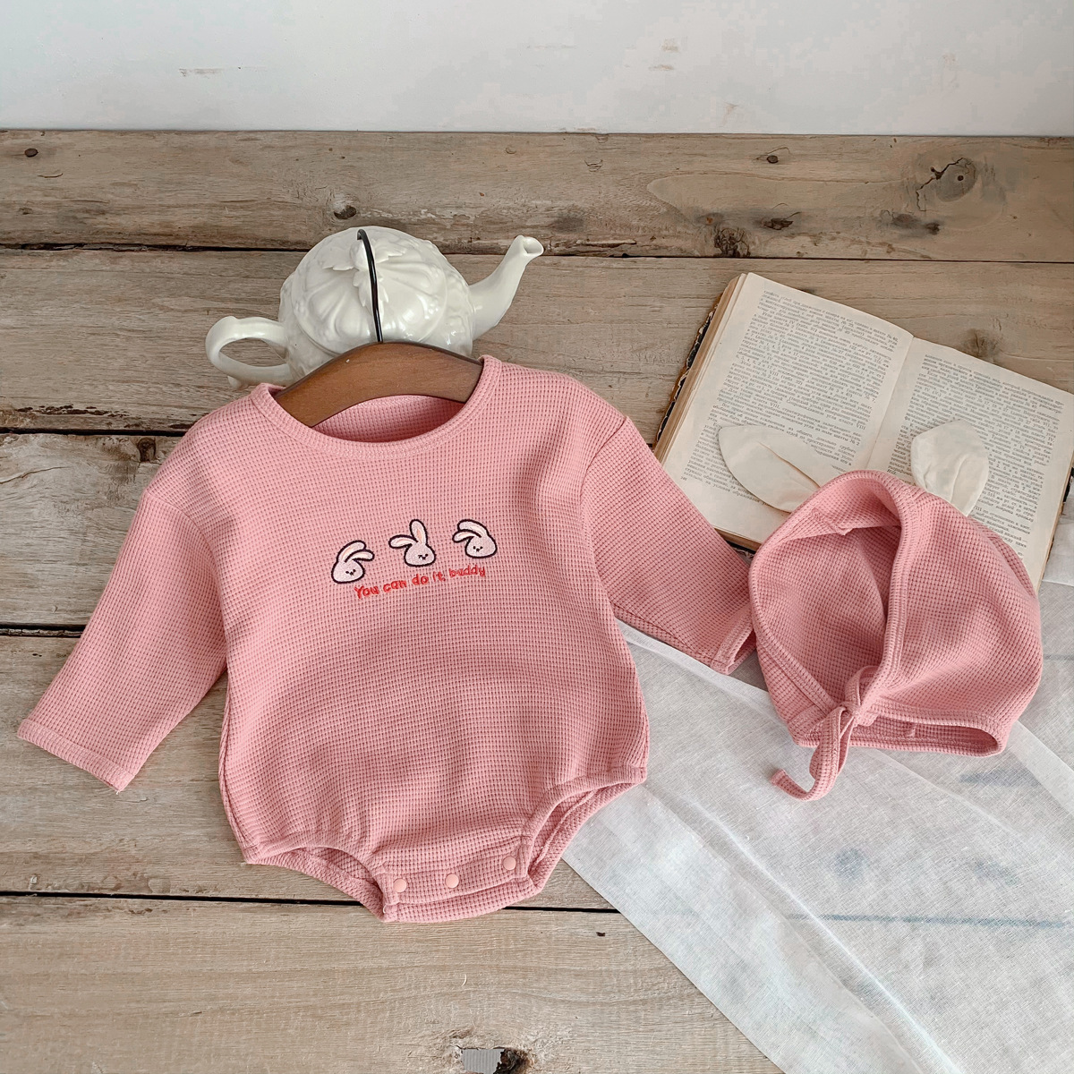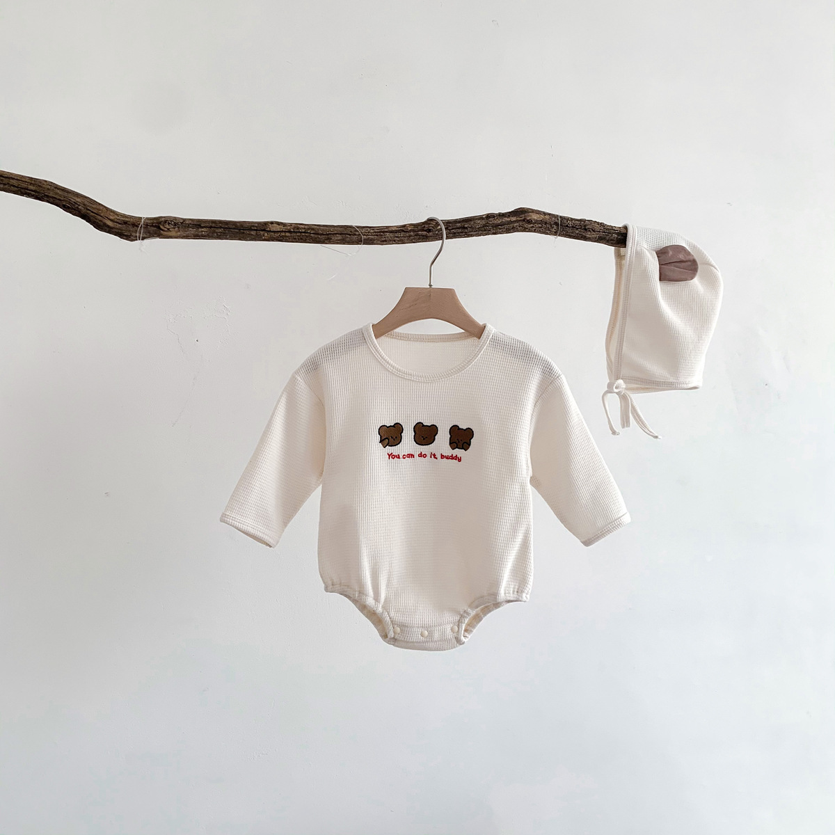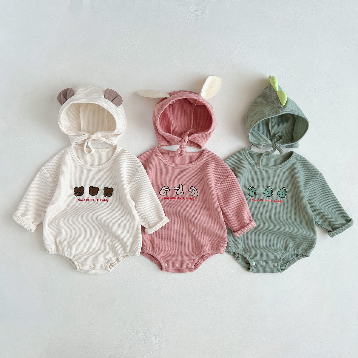 아기 가을 새로운 남자와 여자의 아기 가방 방귀 하 옷 어린이 와플 만화 인쇄 원피스 등산 세트 모자스토어 가기