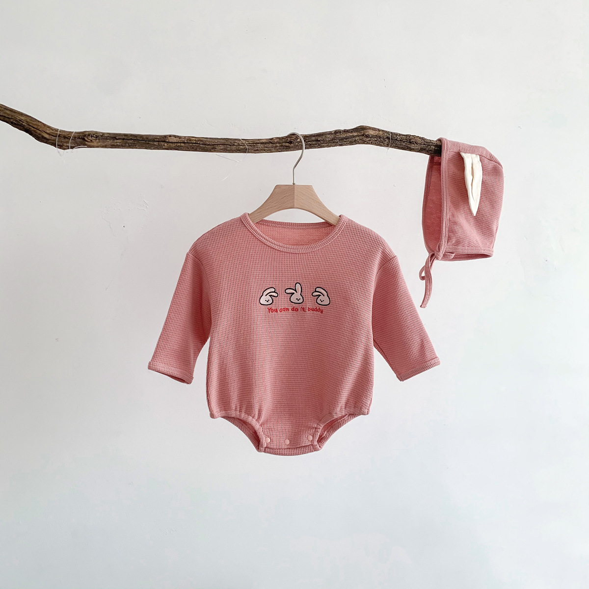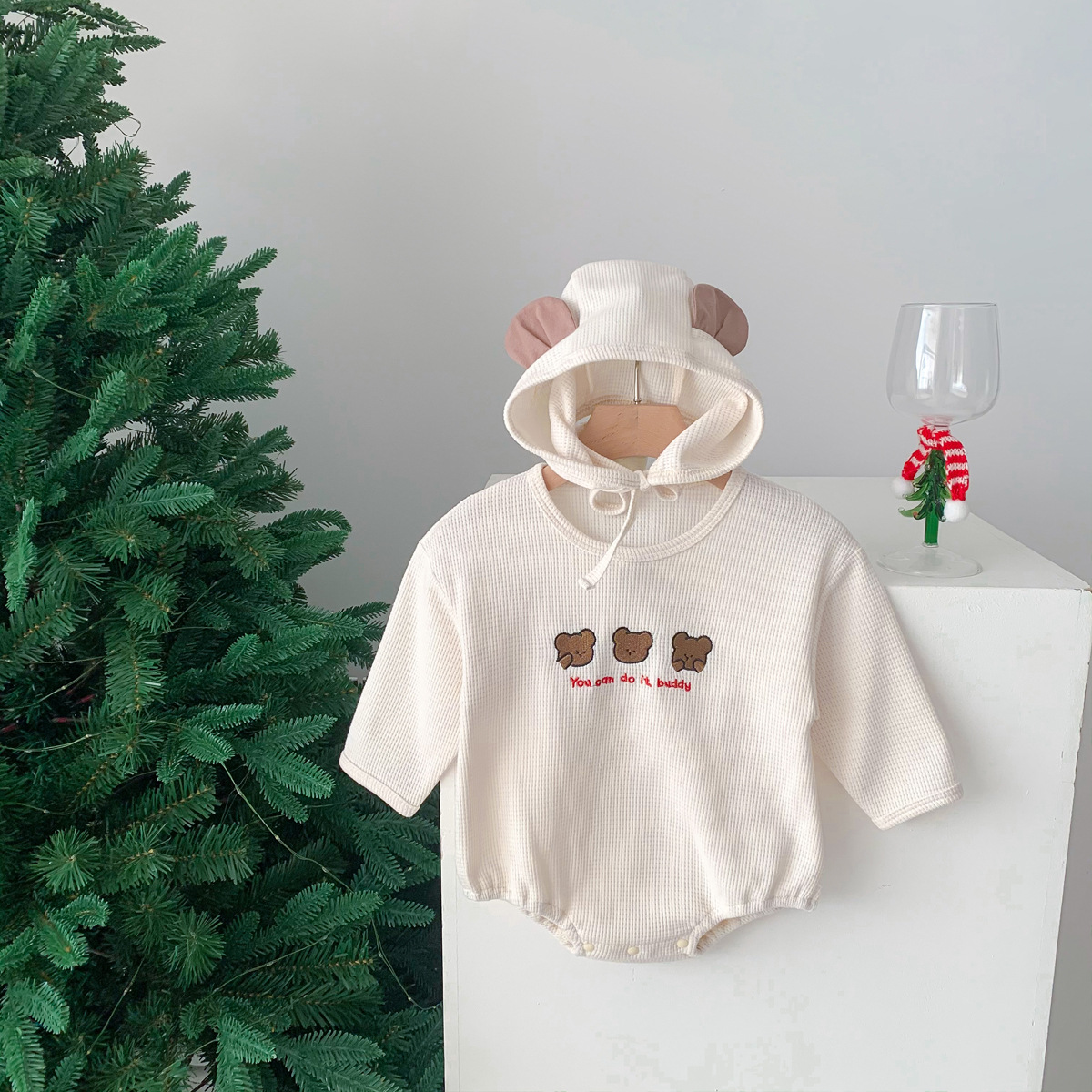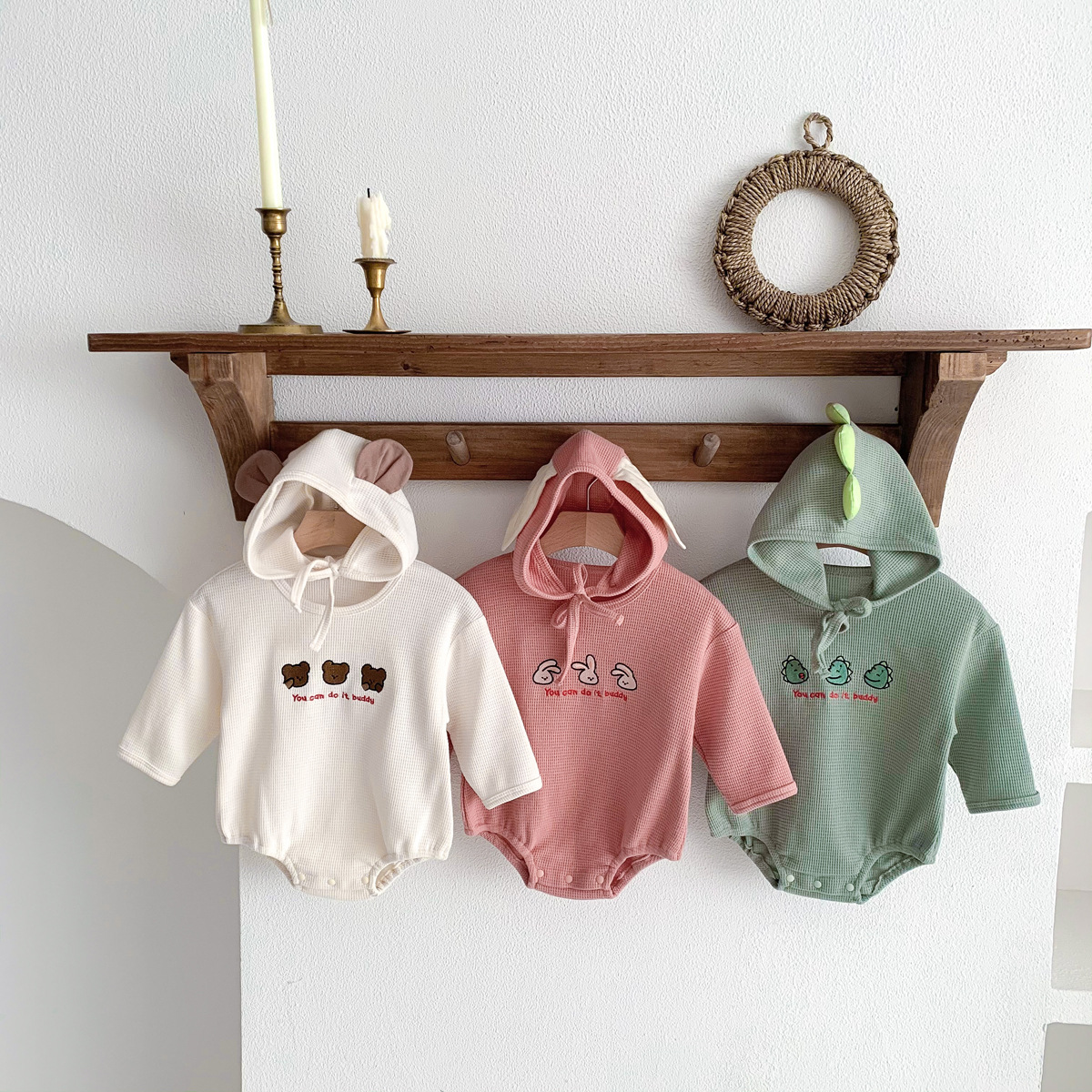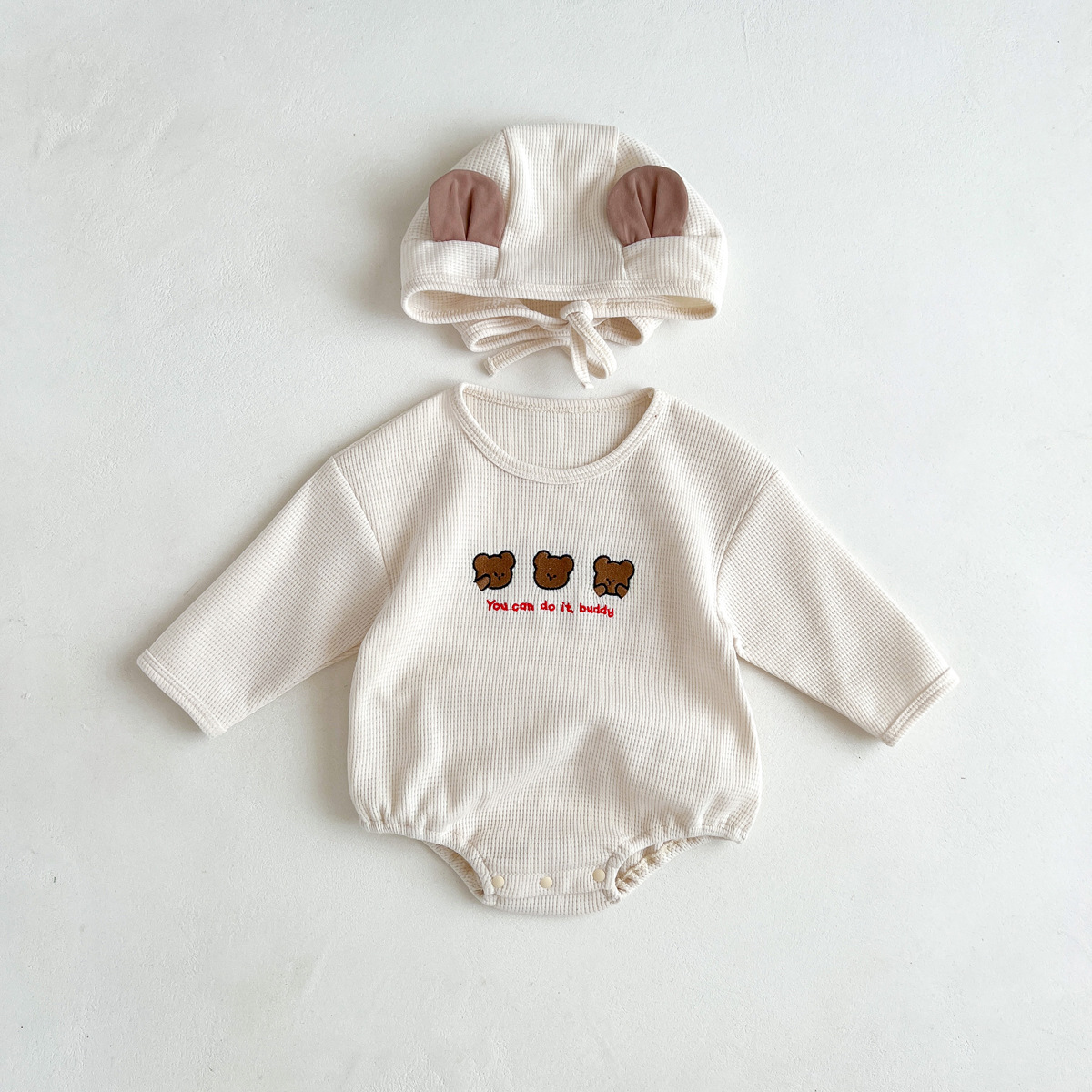 아기 가을 새로운 남자와 여자의 아기 가방 방귀 하 옷 어린이 와플 만화 인쇄 원피스 등산 세트 모자스토어 가기