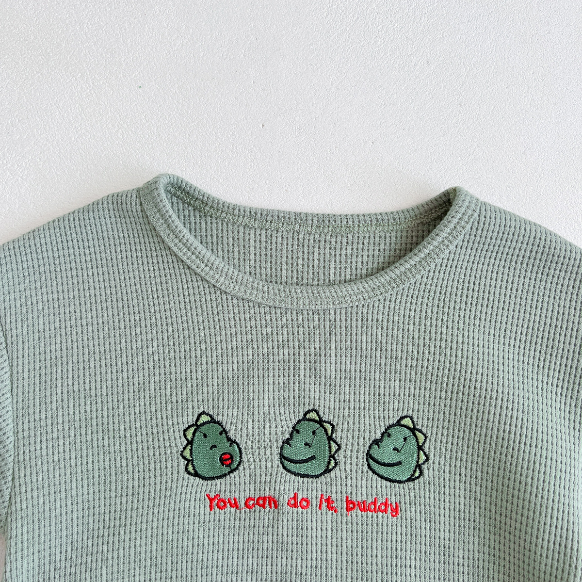 아기 가을 새로운 남자와 여자의 아기 가방 방귀 하 옷 어린이 와플 만화 인쇄 원피스 등산 세트 모자