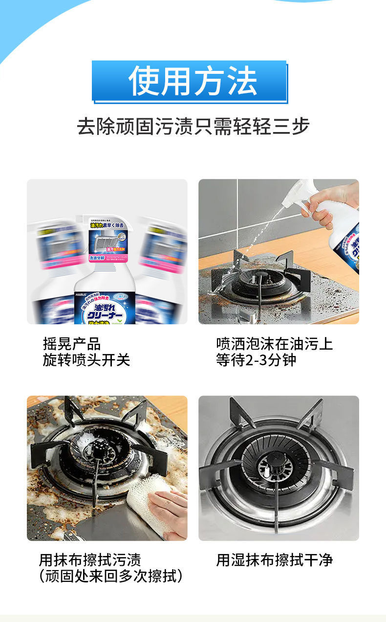 레인지 후드 세정제 기름 얼룩 제거용 강력 레인지 후드 주방 중유 얼룩 청소 거품 탈지와 향