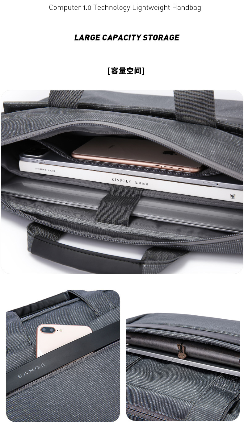 BANGE 새로운 남성용 컴퓨터 핸드백 얇은 노트북 15.6 인치 비즈니스 서류 가방 크로스 보더 남성용 및 여성용 가방스토어 가기