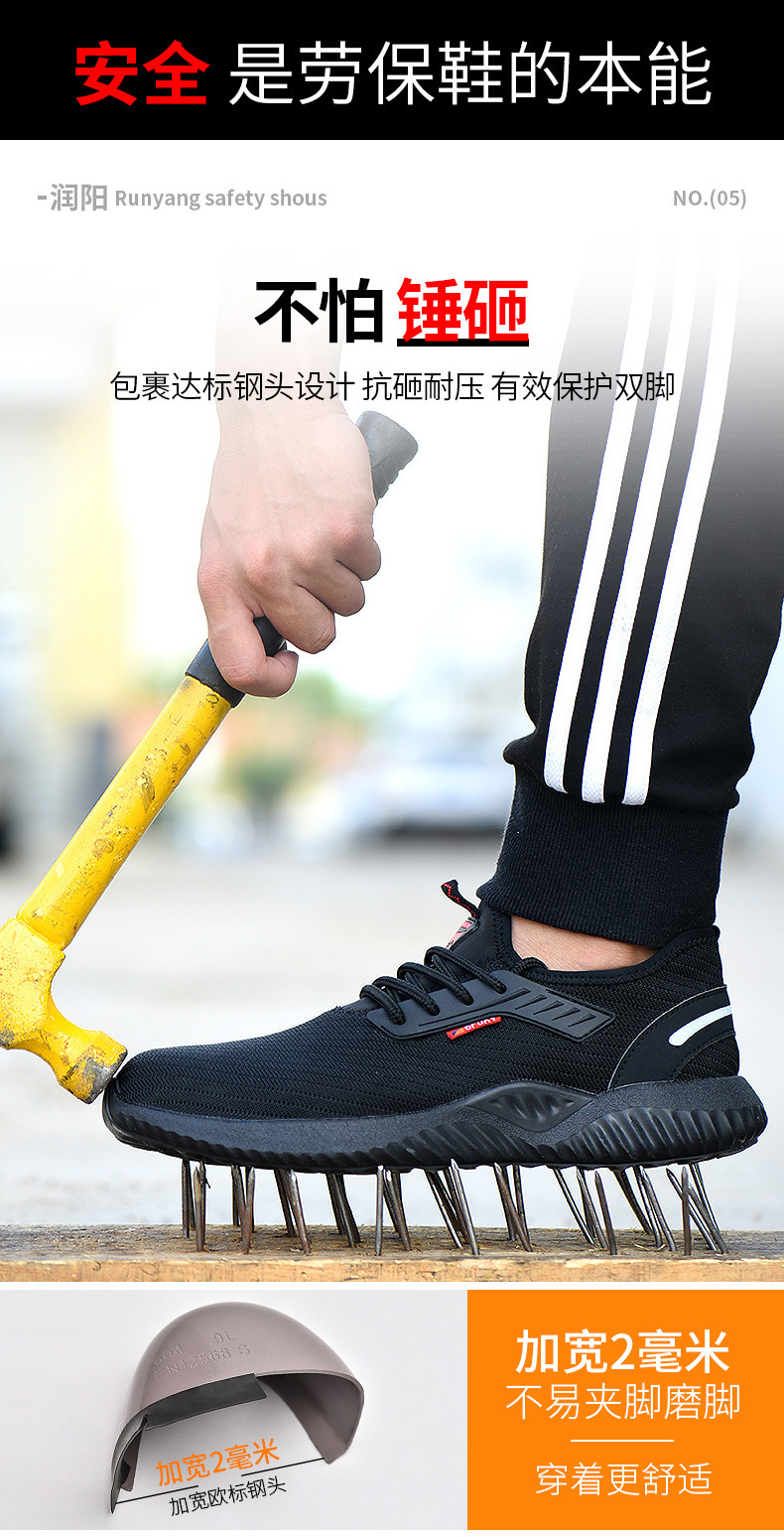 남성용 노동 보호 신발, 파손 방지, 펑크 방지, 통기성, 탈취제, 경량, 편안함, 미끄럼 방지, 안전 보호 작업 신발, 국경 간스토어 가기