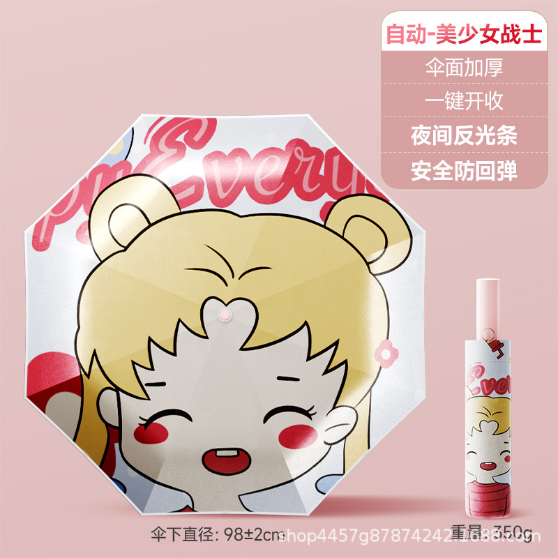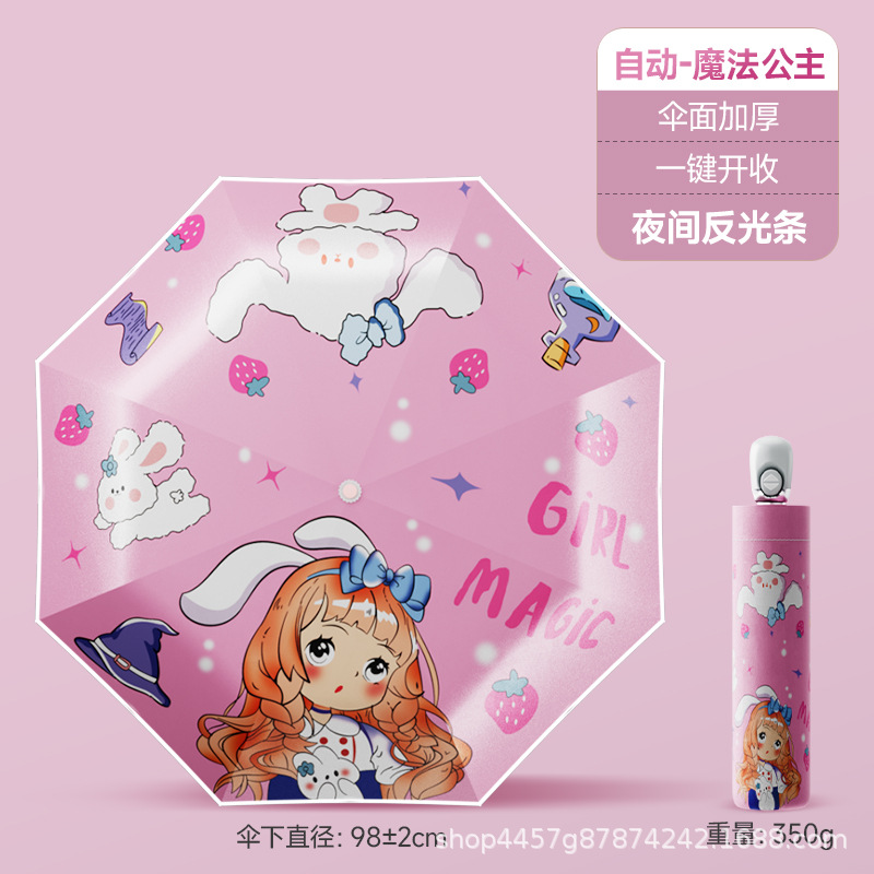 어린이 우산 소녀용 차양 초등학생 통학용 특수 우산 비와 햇빛 모두 사용 가능 접이식 자동 우산 만화 안전 반사