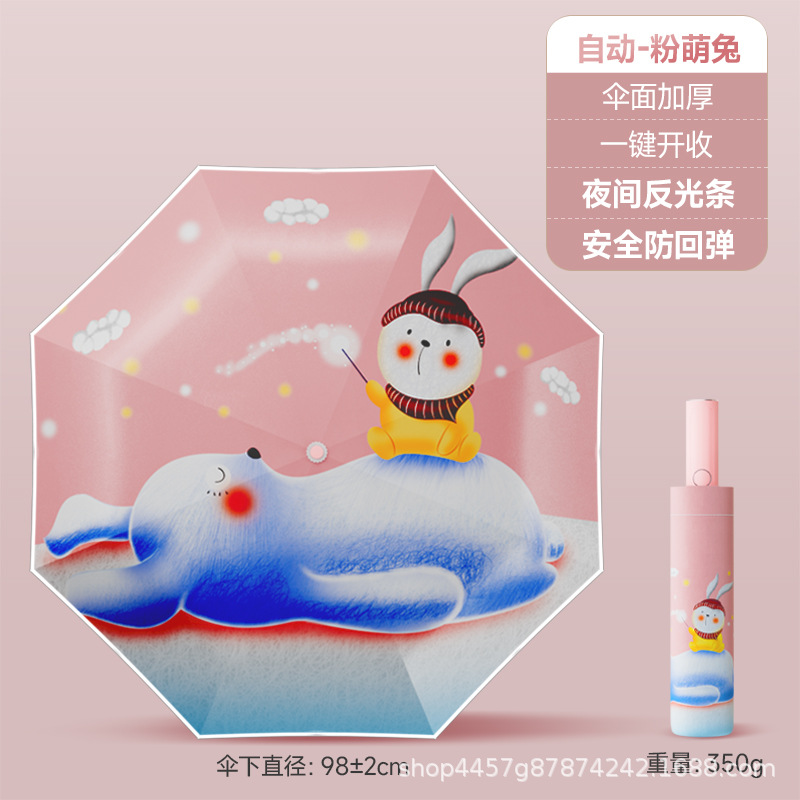 • 핑크 귀여운 토끼-자동 [원 버튼 개폐 안전 반사 스트립]]