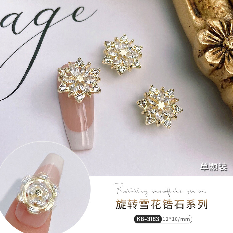 새해 인터넷 연예인 고속 전송 비즈 지르콘 눈송이 네일 쥬얼리 회전 전체 다이아몬드 빛 고급 금속 네일 장식 드릴스토어 가기