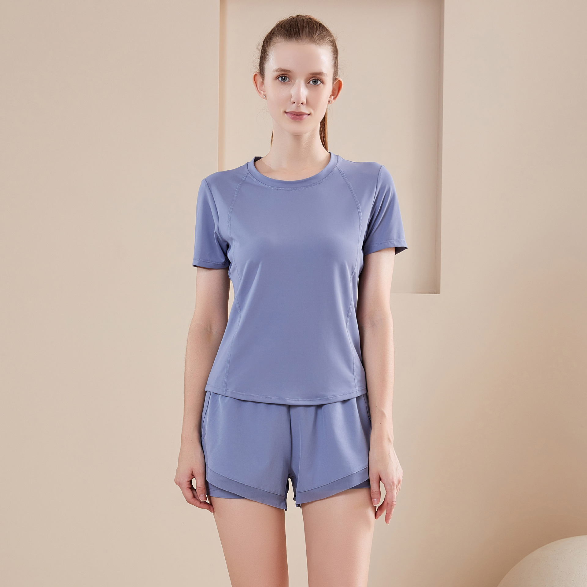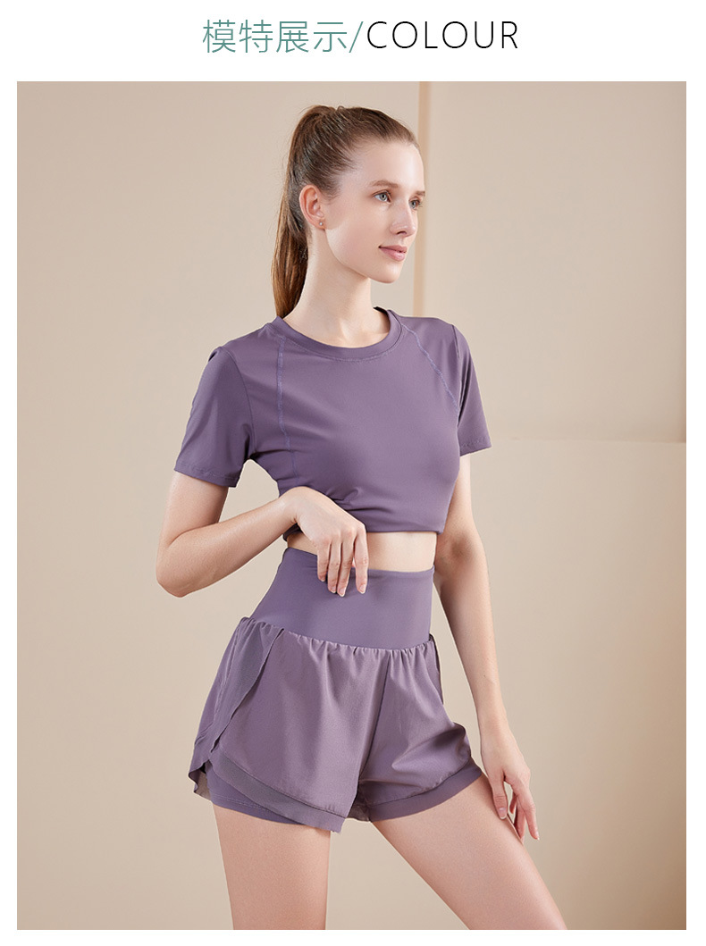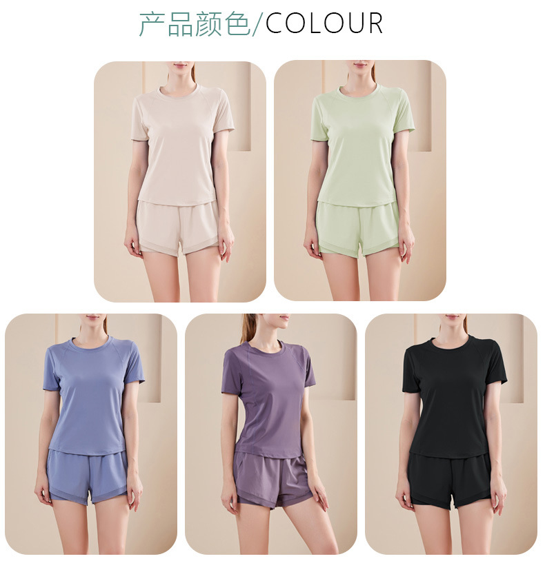 요가 의류 여성의 느슨한 탑 반팔 실행 통기성 티셔츠 슬리밍 스포츠웨어 세트 봄과 여름 운동 피트니스 의류스토어 가기