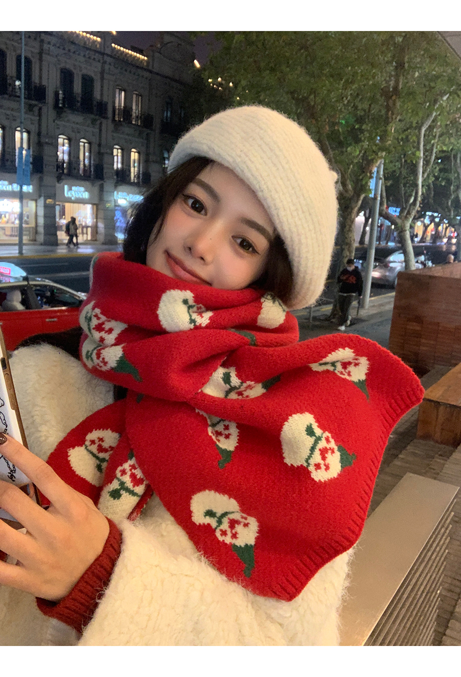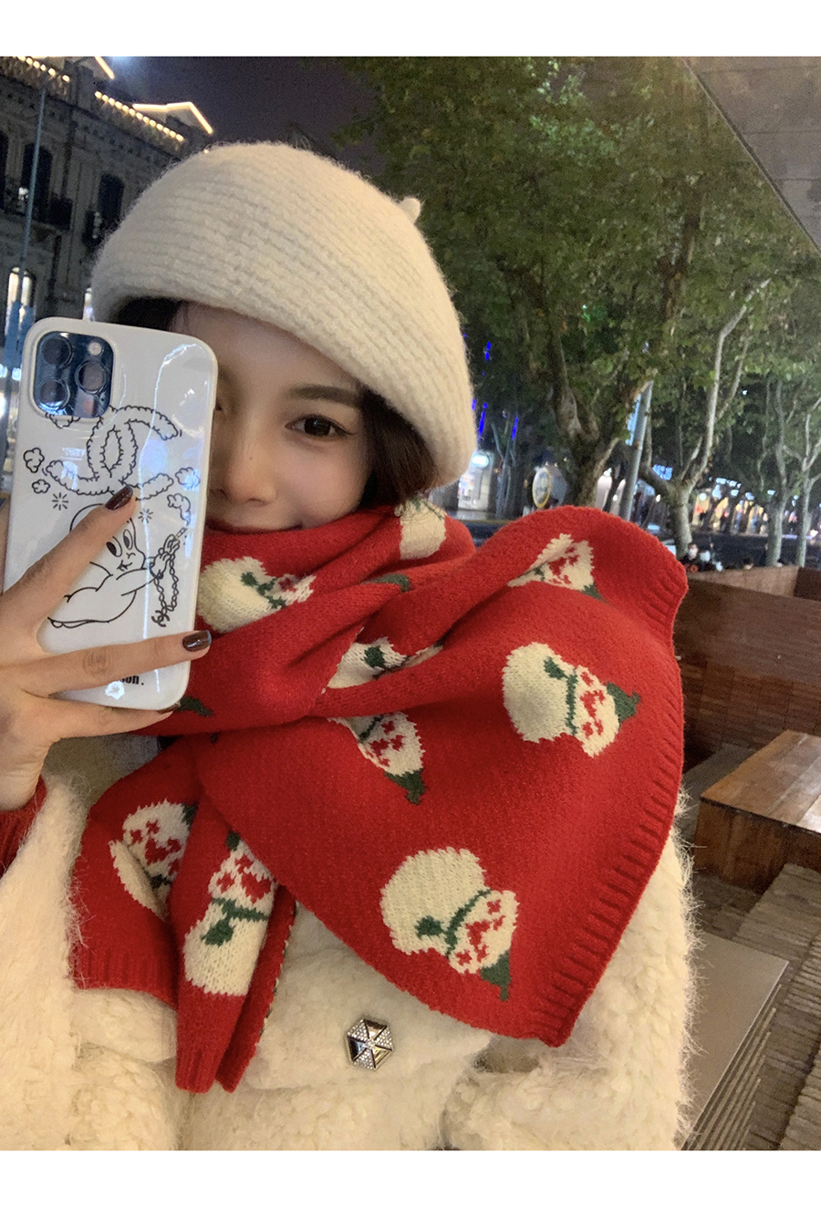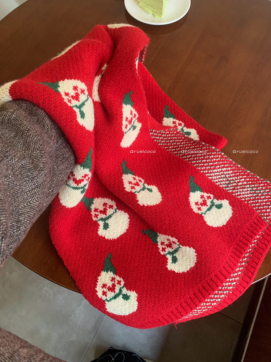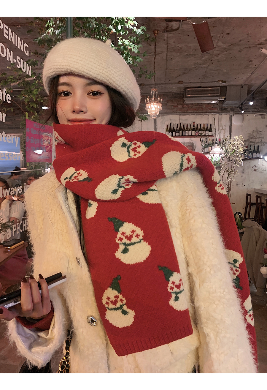 분위기 ~ 새해 레드 크리스마스 눈사람 니트 스카프 겨울 여성용 고급 센스 조커 따뜻한 학생 스카프