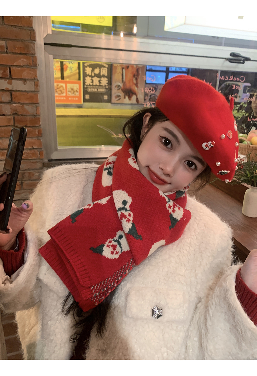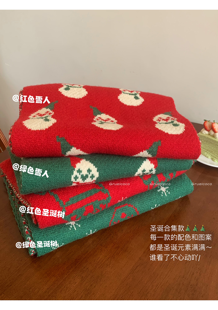 분위기 ~ 새해 레드 크리스마스 눈사람 니트 스카프 겨울 여성용 고급 센스 조커 따뜻한 학생 스카프스토어 가기