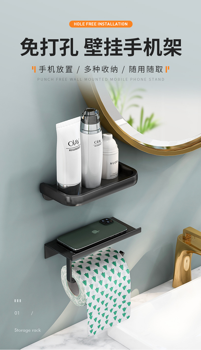 펀치 없는 공간 알루미늄 욕실 티슈 랙 보관 트레이 벽걸이 형 화장실 롤 페이퍼 홀더 화장지 홀더 다기능스토어 가기