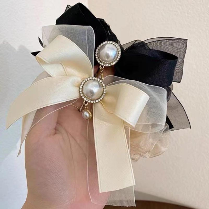 인터넷 빨간 진주 리본 활 머리띠 머리 밧줄 2022 새로운 머리핀 머리핀 클립 머리 진주 여자스토어 가기
