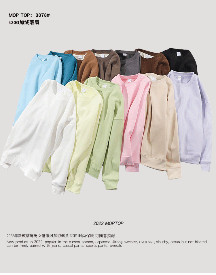 남성과 여성을 위한 430g 겨울 기모 두꺼운 크루넥 소프트 밀랍 스웨터 일본 무거운 느슨한 어깨 단색 스웨터