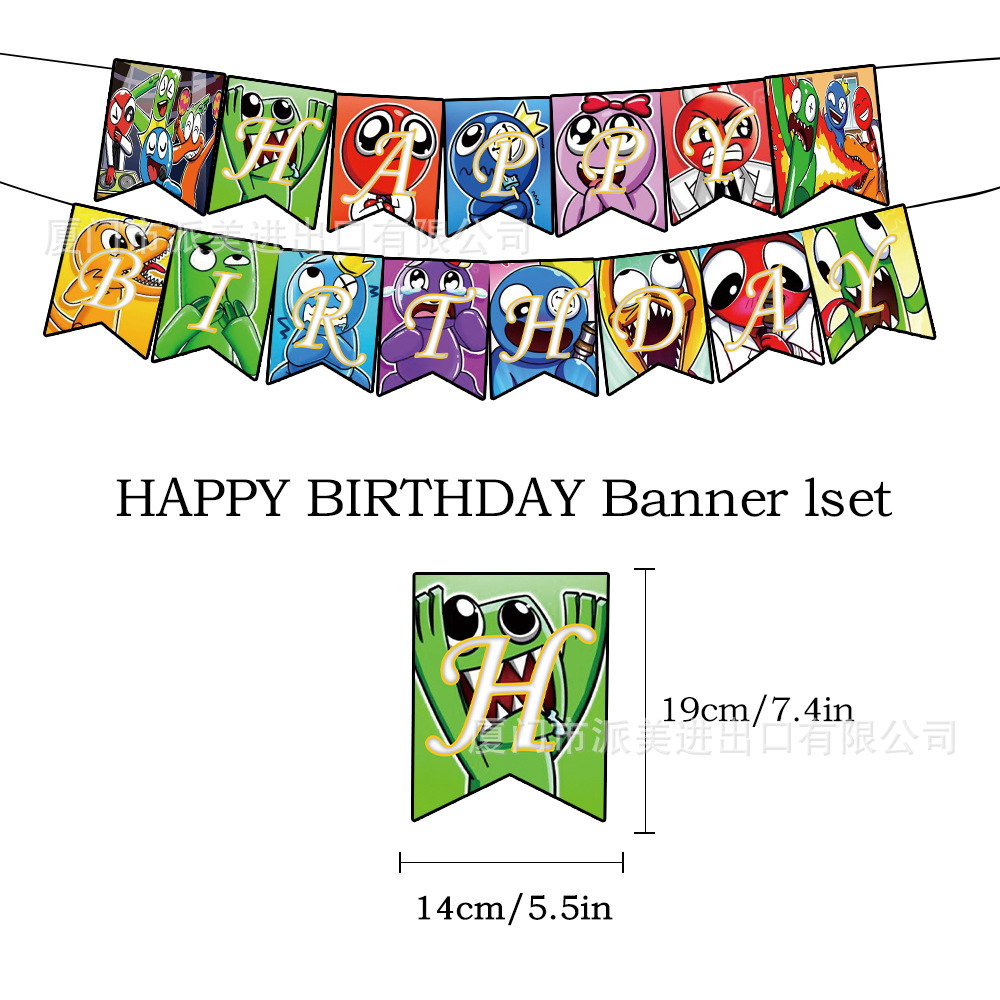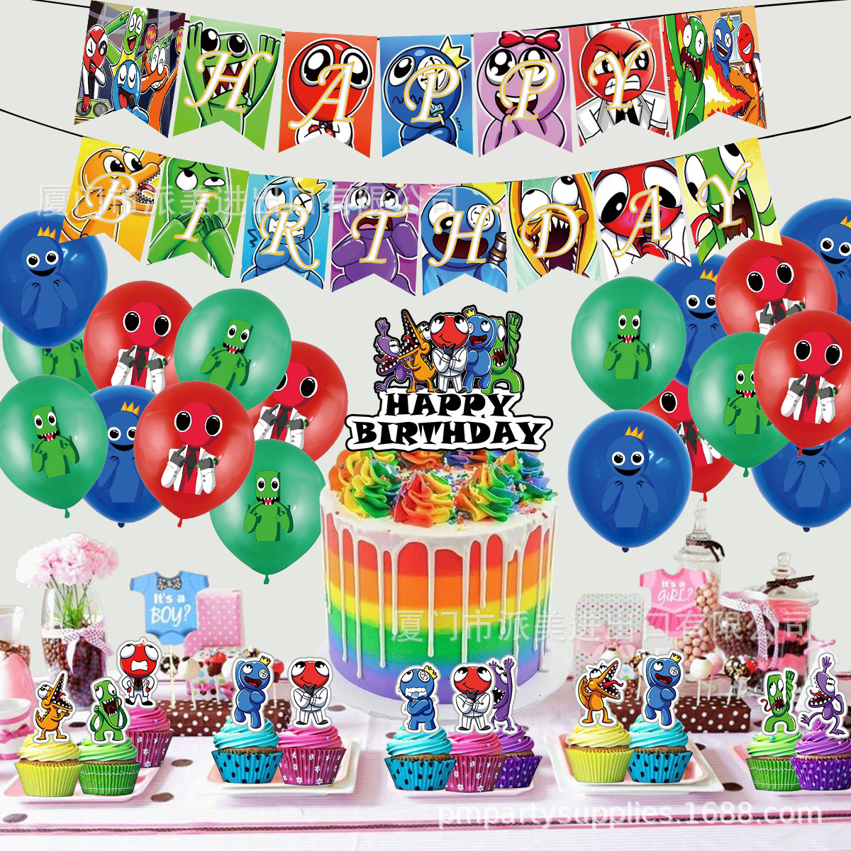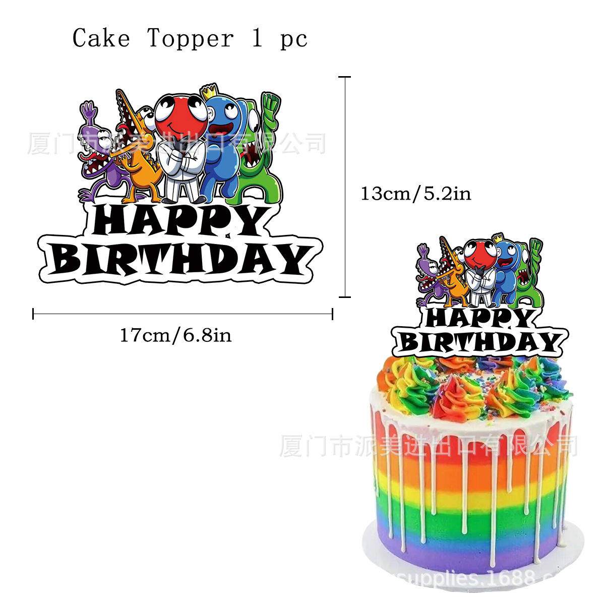 아마존 레인보우 프렌즈 테마 케이크 카드 당겨 깃발 생일 풍선 파티 장식 RainbowFriends