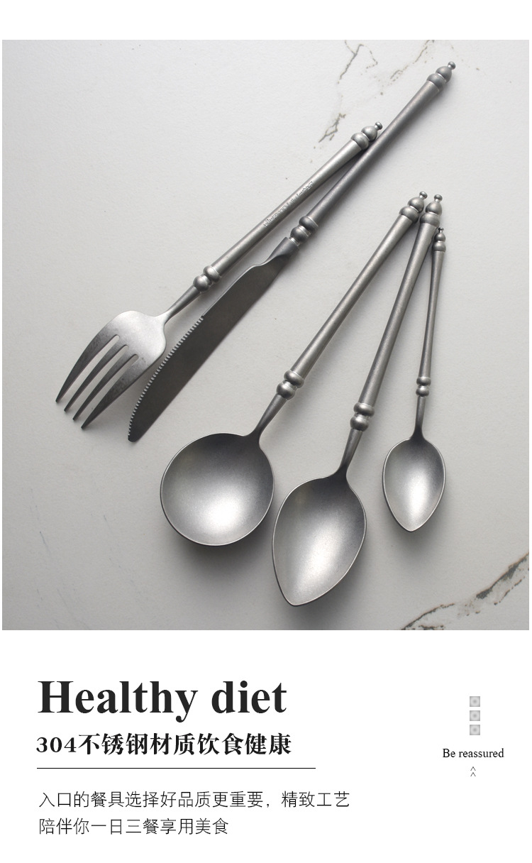 빈티지 눈송이 모래 304 스테인레스 스틸 나이프, 포크와 스푼 세트 가정용 서양 식기 오래된 스푼 스테이크 3 종 세트스토어 가기