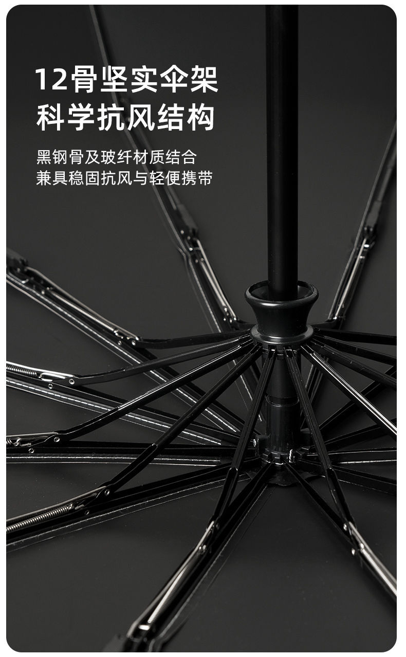 • [합금 이중 용골] 24 뼈 방풍 우산 흑요석 블랙