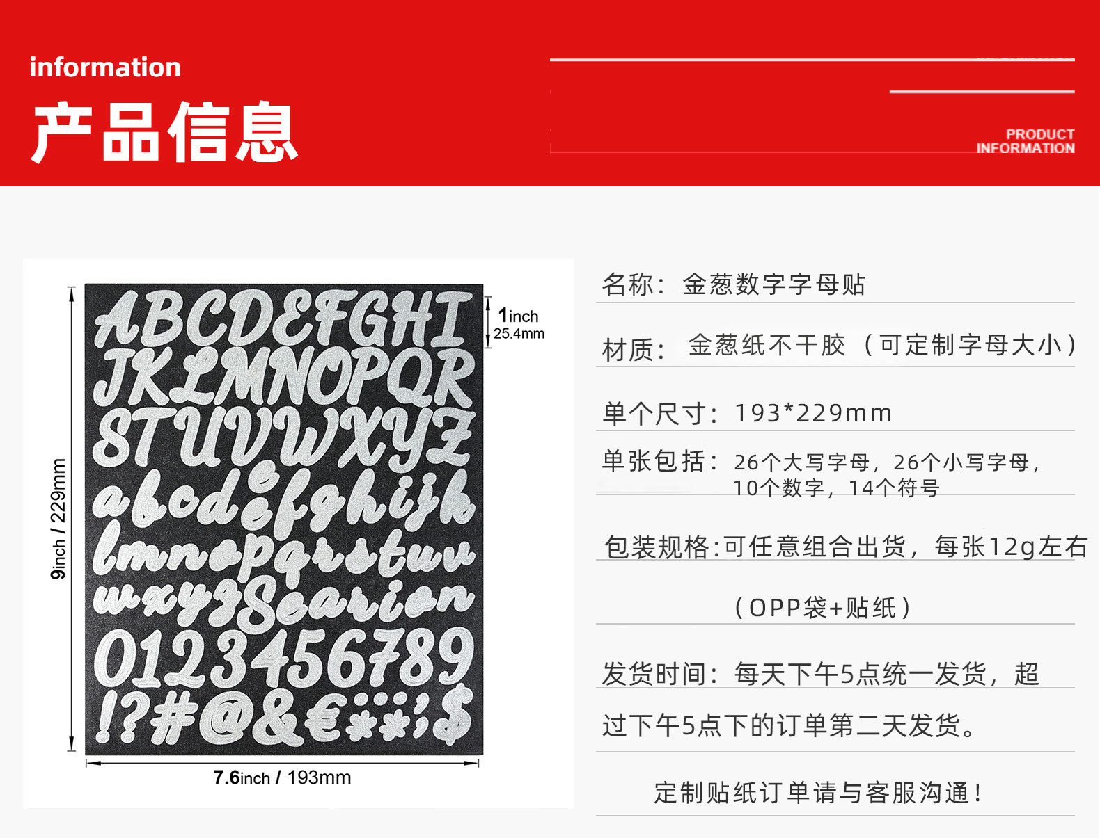 크로스-국경 반짝이 편지 스티커 황금 실버 디지털 창조적 인 DIY 장식 물 컵 사서함 영어 편지 스티커스토어 가기