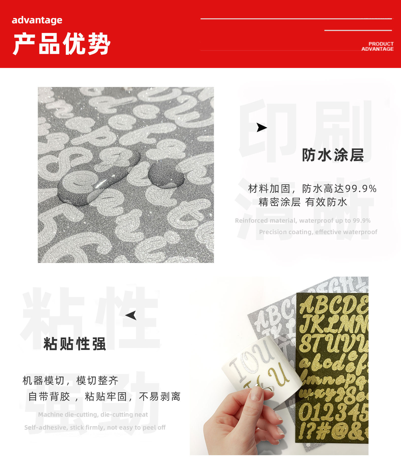크로스-국경 반짝이 편지 스티커 황금 실버 디지털 창조적 인 DIY 장식 물 컵 사서함 영어 편지 스티커